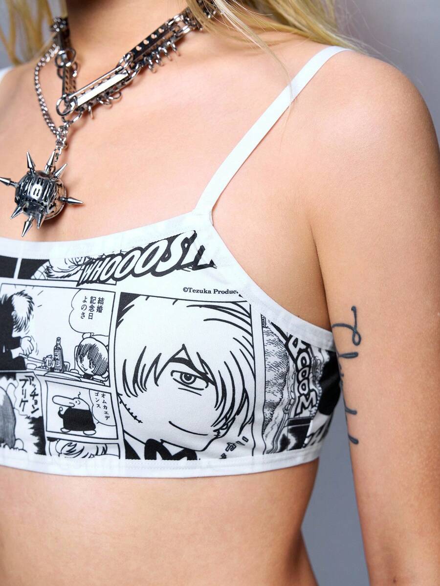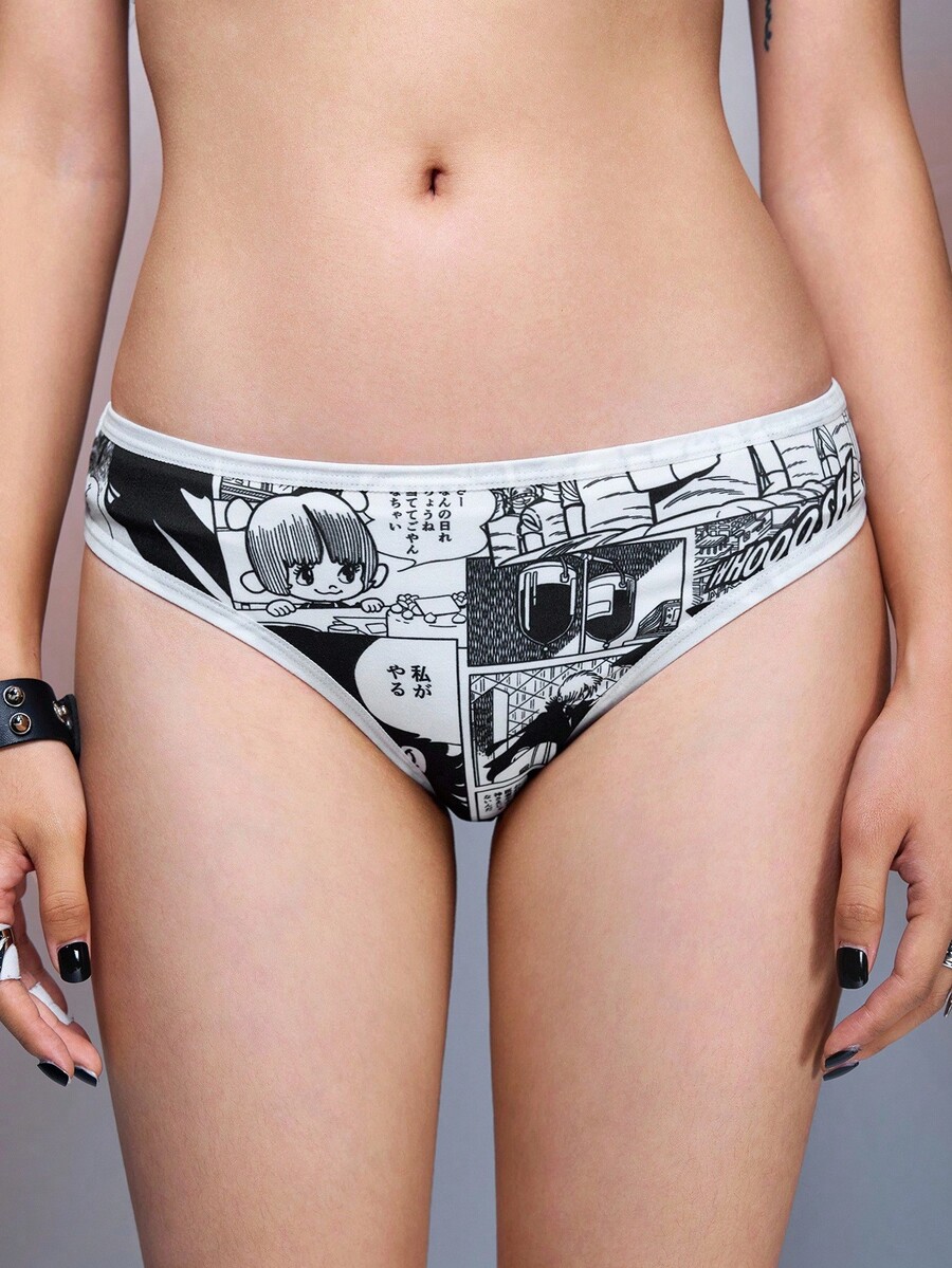Black Jack X ROMWE Set di reggiseno e slip senza fili a cartoni animati in bianco e nero per donna
