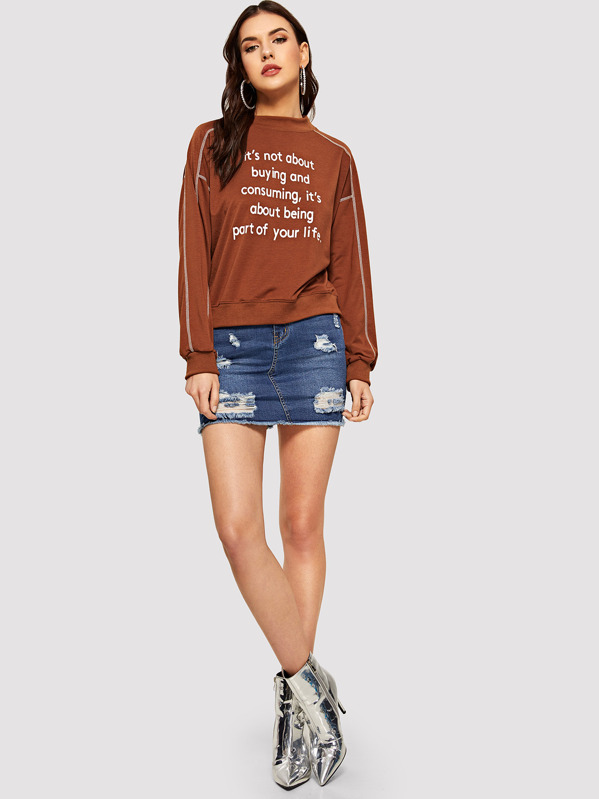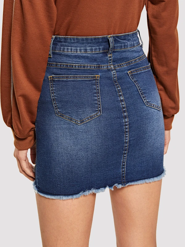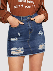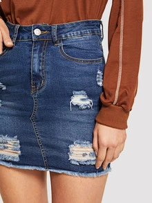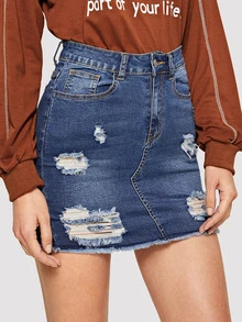 Gonna in denim rotti con lavaggio incolore