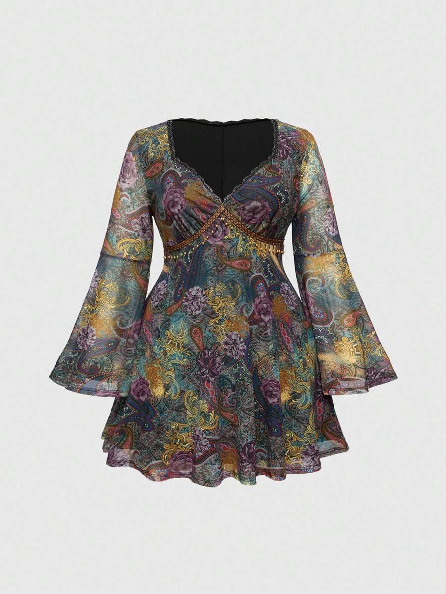 Hippie Pipistrello con frange occidentali, orlo a paisley, stile boho da donna