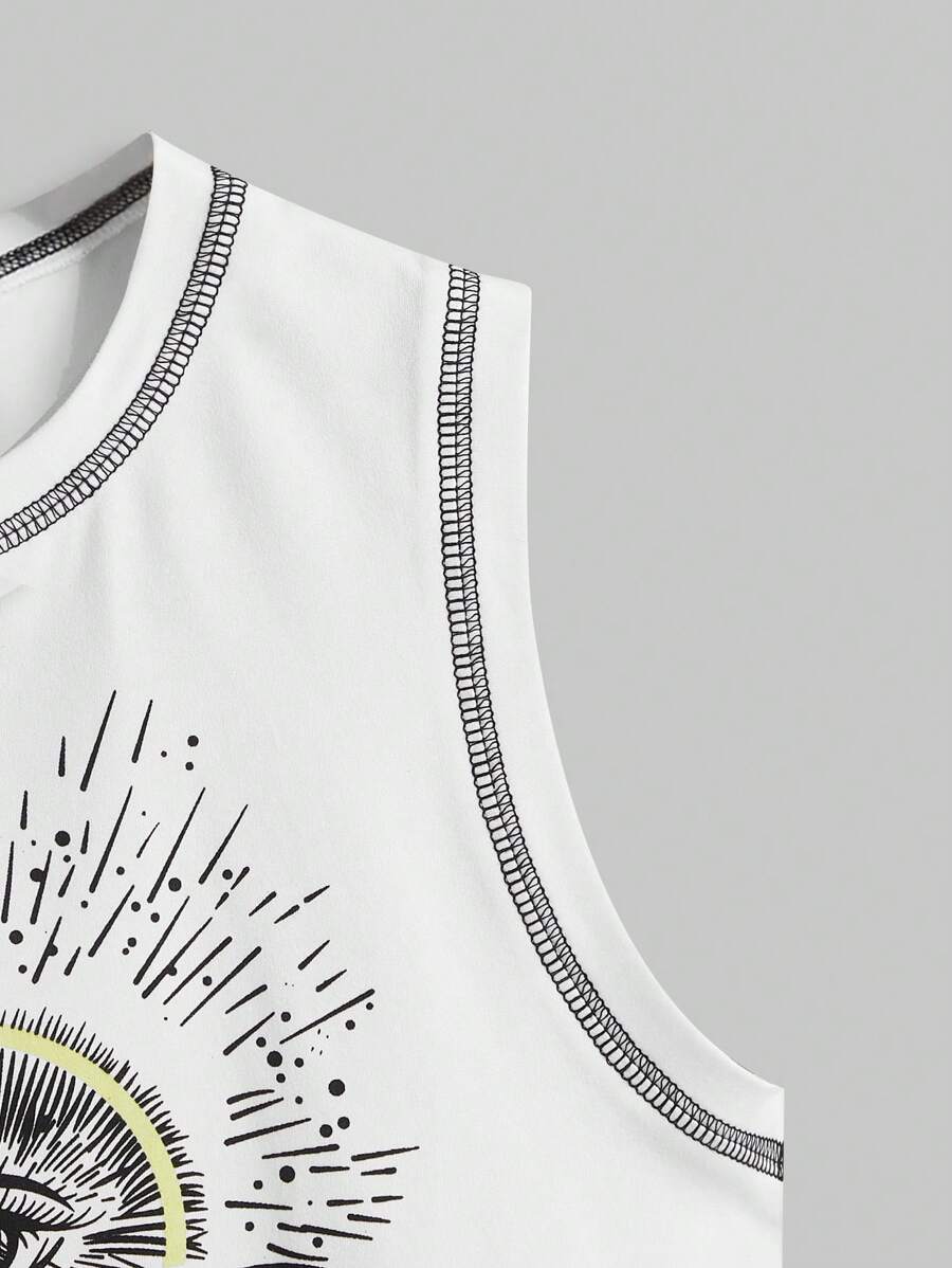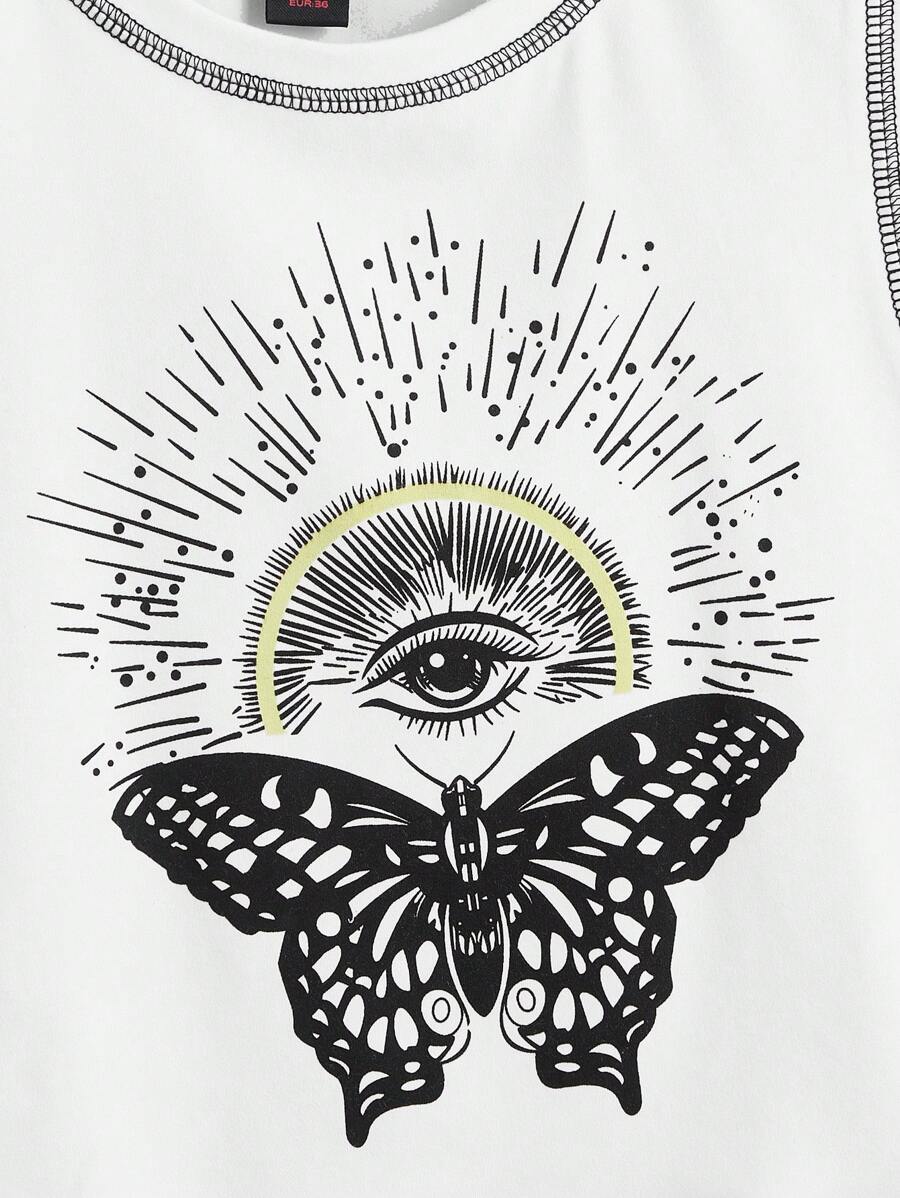 Canotta con stampa a farfalla e occhio e rifiniture a punto zigrinato