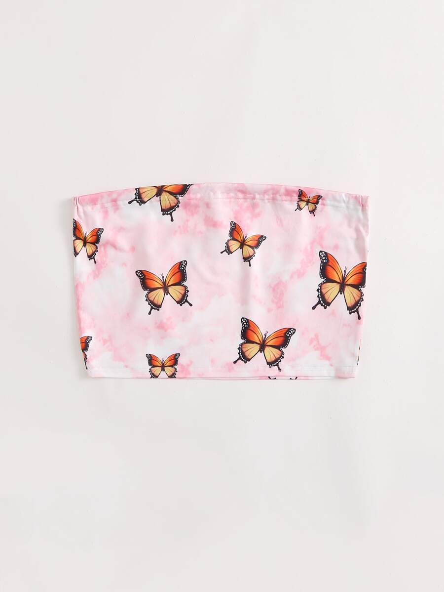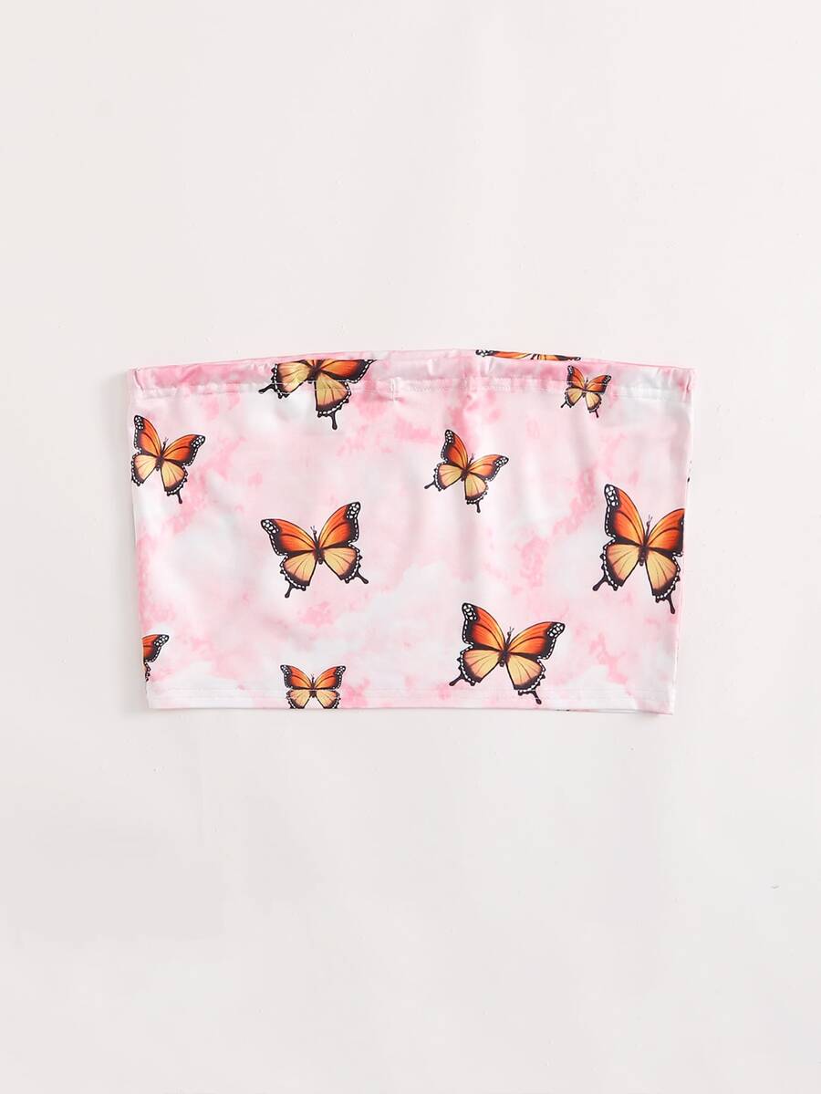 Top fasce corto con grafica farfalla tie dye