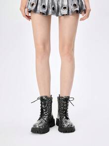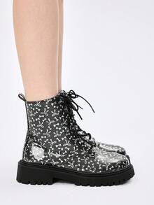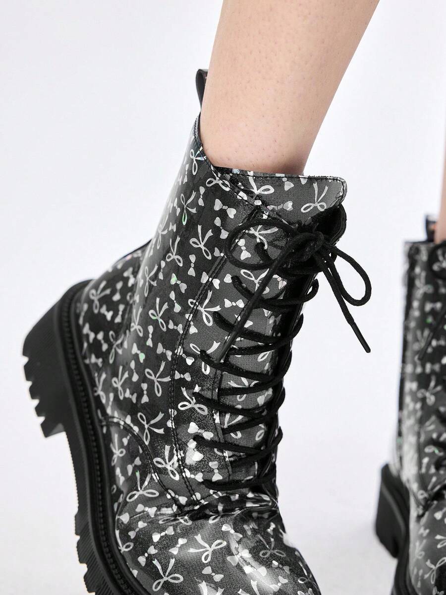 Stivaletti alla caviglia con stampa farfalla e suola spessa, di moda e versatili per l'autunno/inverno