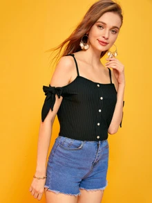 Maglietta con spalle scoperte e bottone