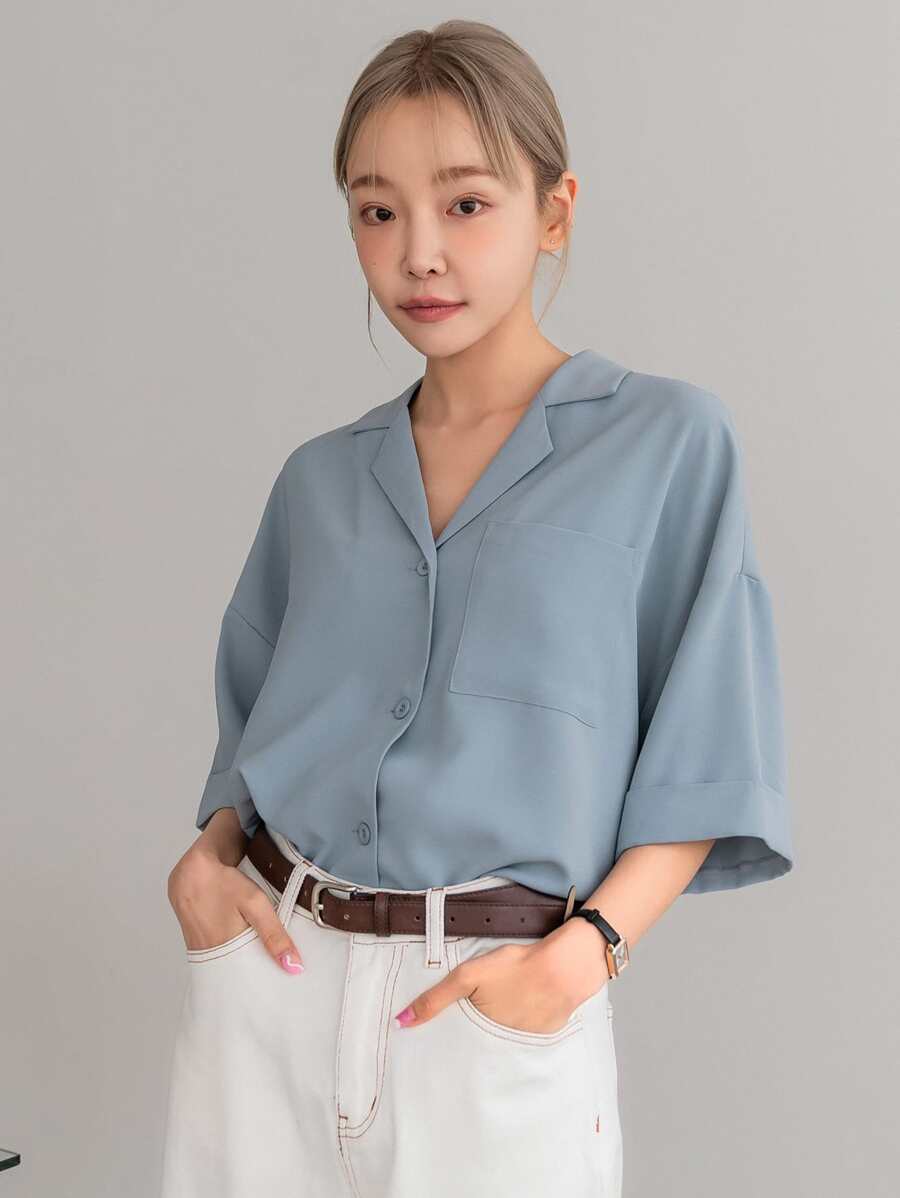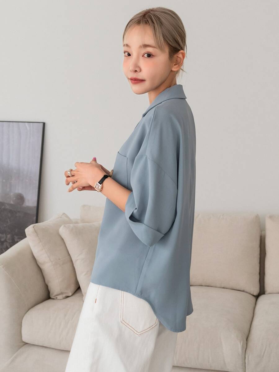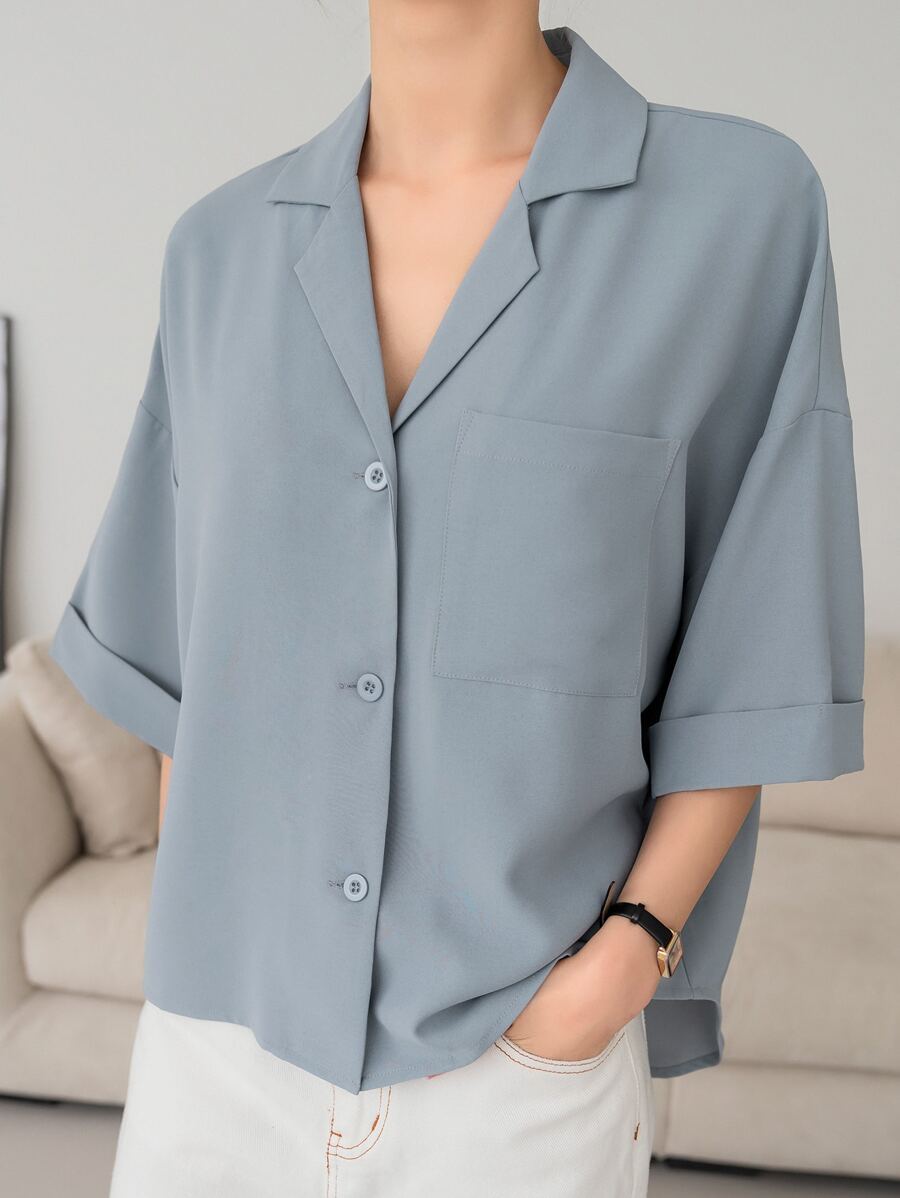 Blusa con bottoni e spalle scivolate, abbigliamento casual elegante da donna