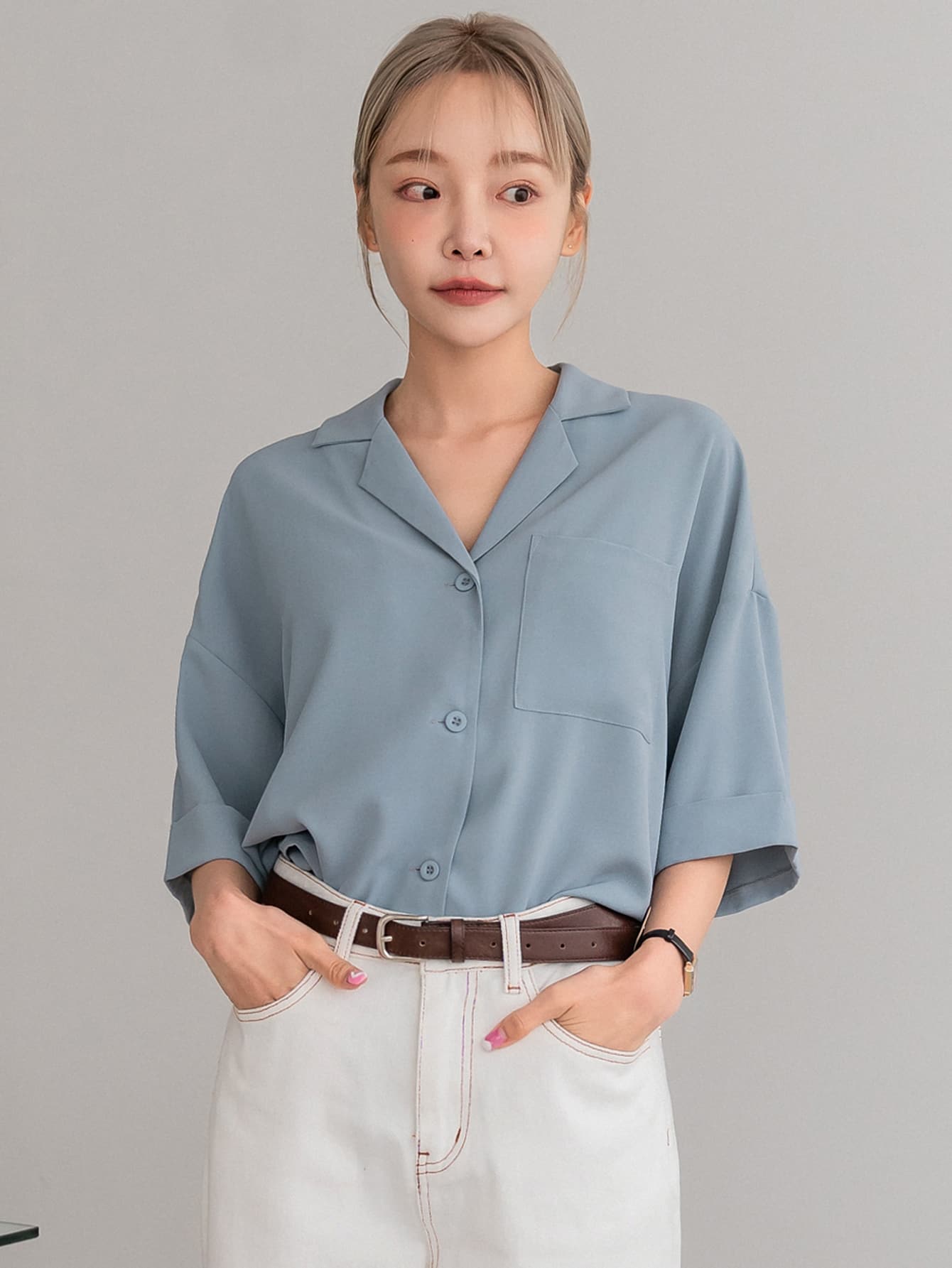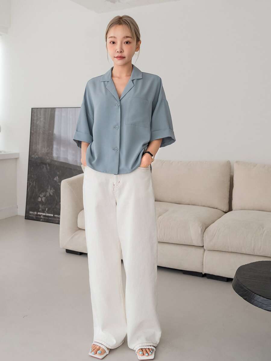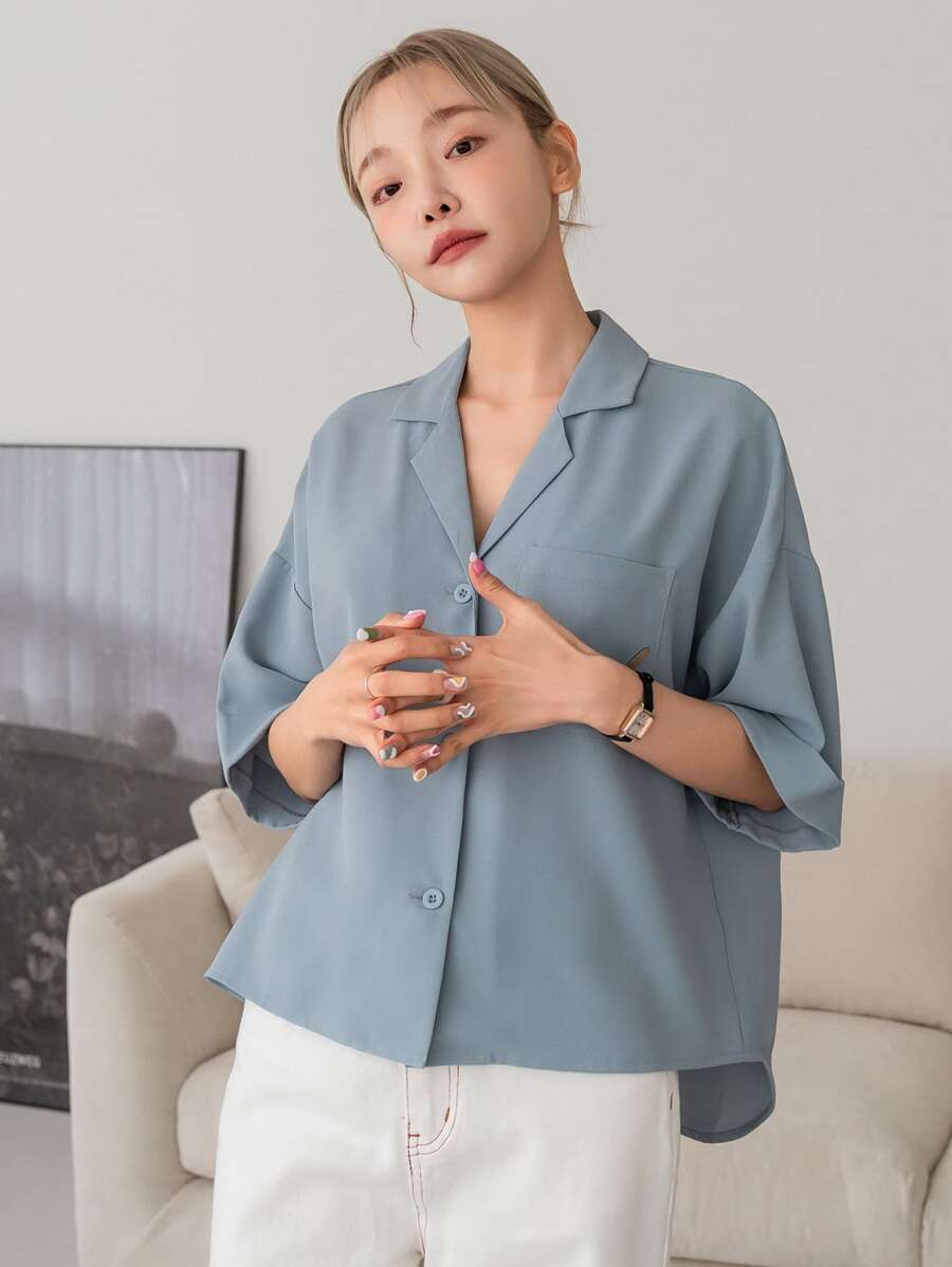 Blusa con bottoni e spalle scivolate, abbigliamento casual elegante da donna