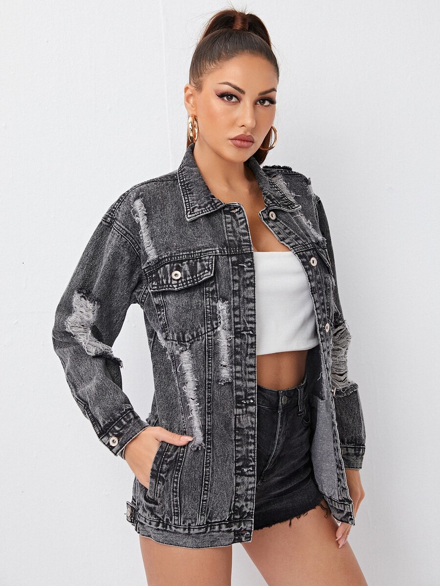 Giacca di denim con tasca e bottone