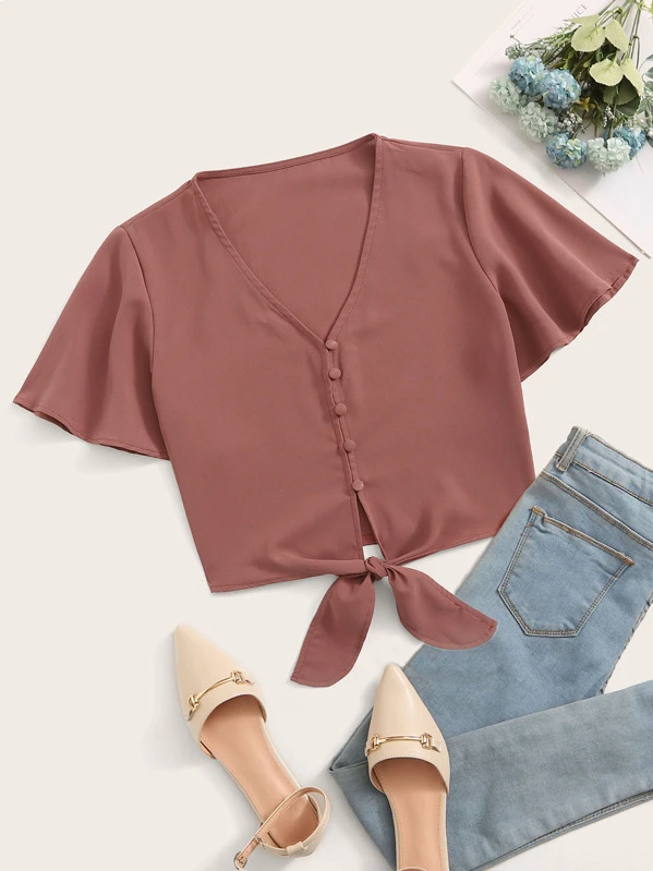 Top con nodo frontale e bottone