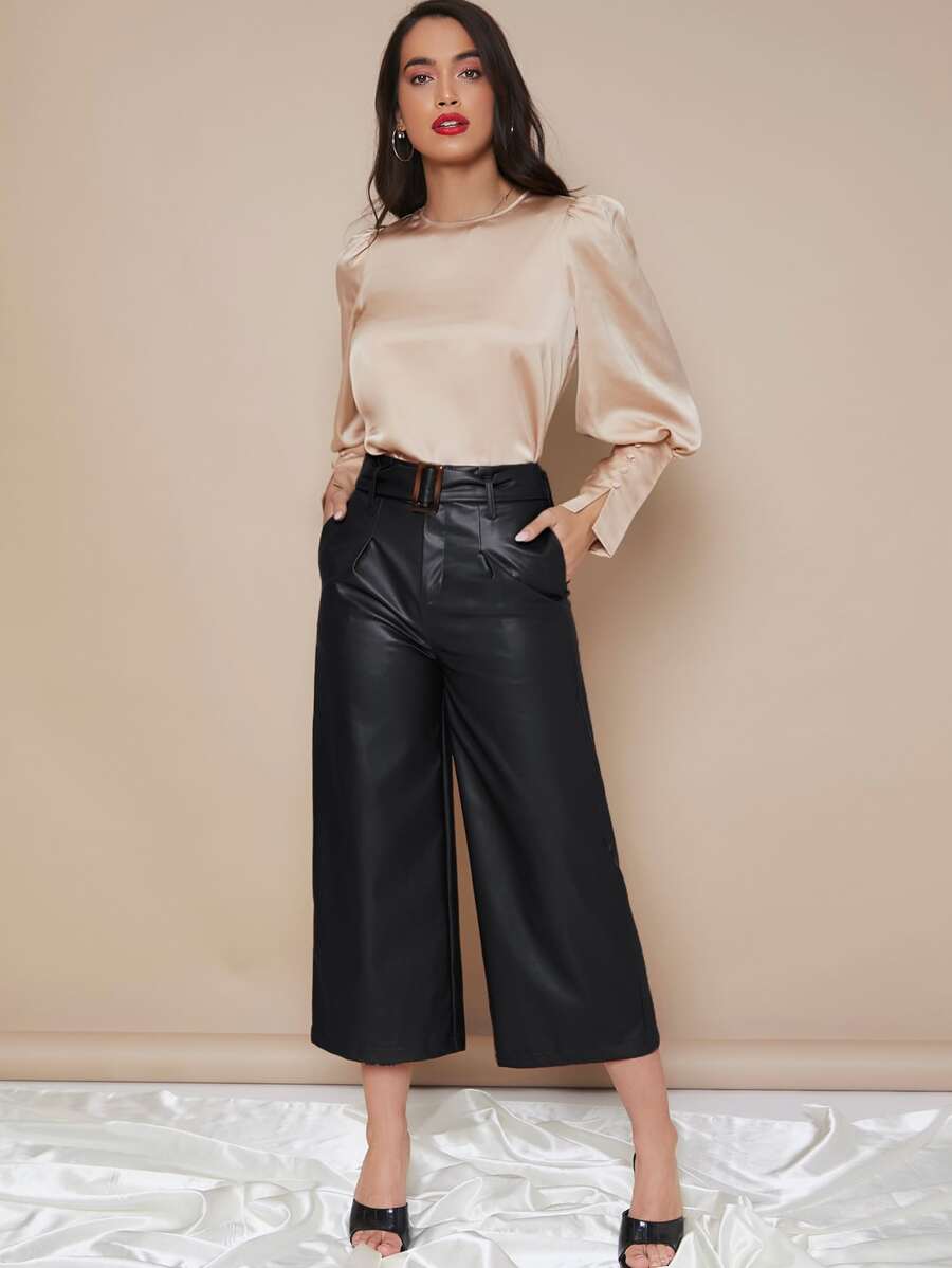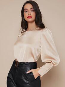 Top in raso con manica a lanterna e polsino abbottonato
