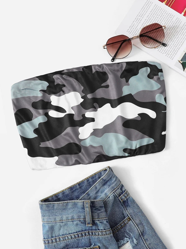 Top tube corto con stampa mimetico