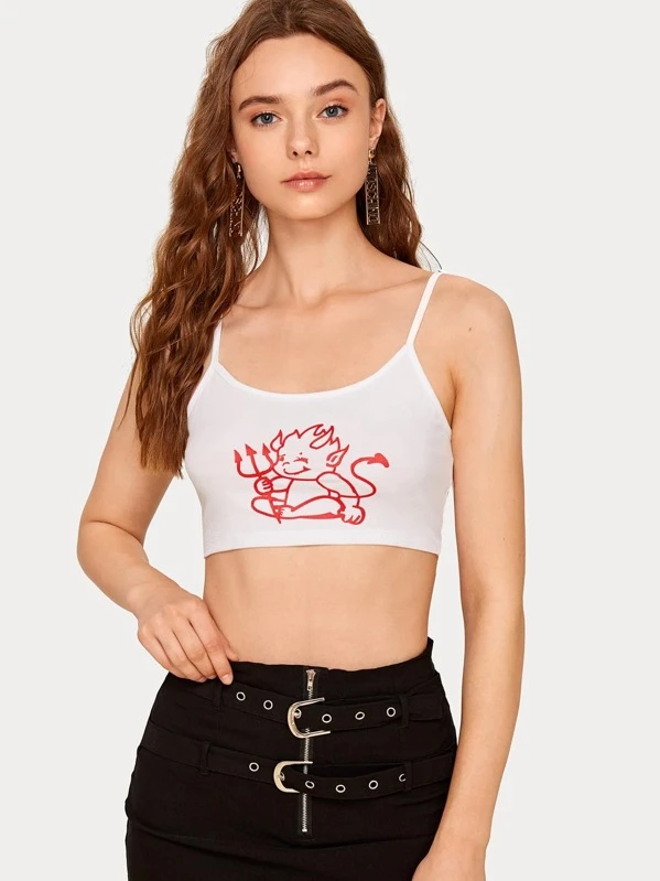 Top contorto indietro con bretelle sottili e stampa fumetto