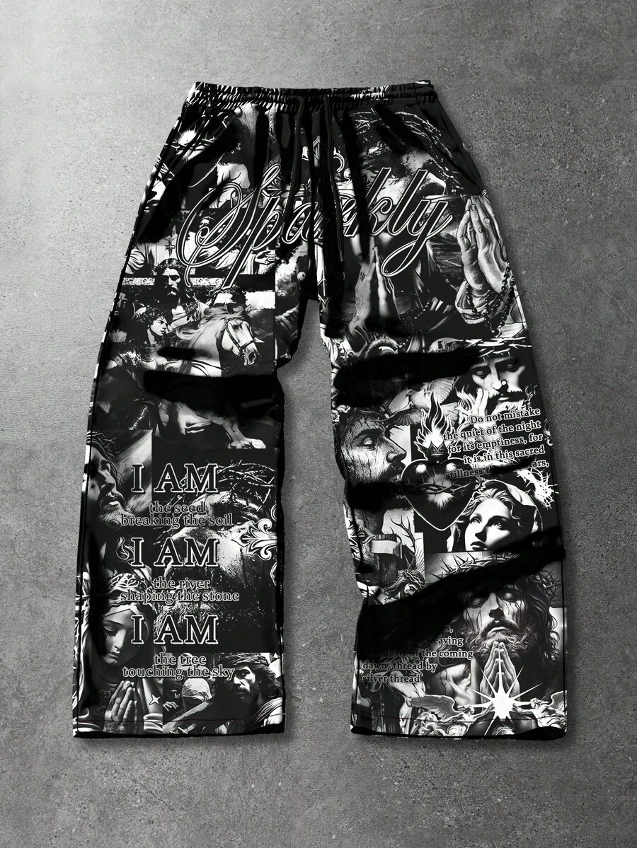 Pantaloni della tuta casual con vita in vita e gamba ampia per uomo