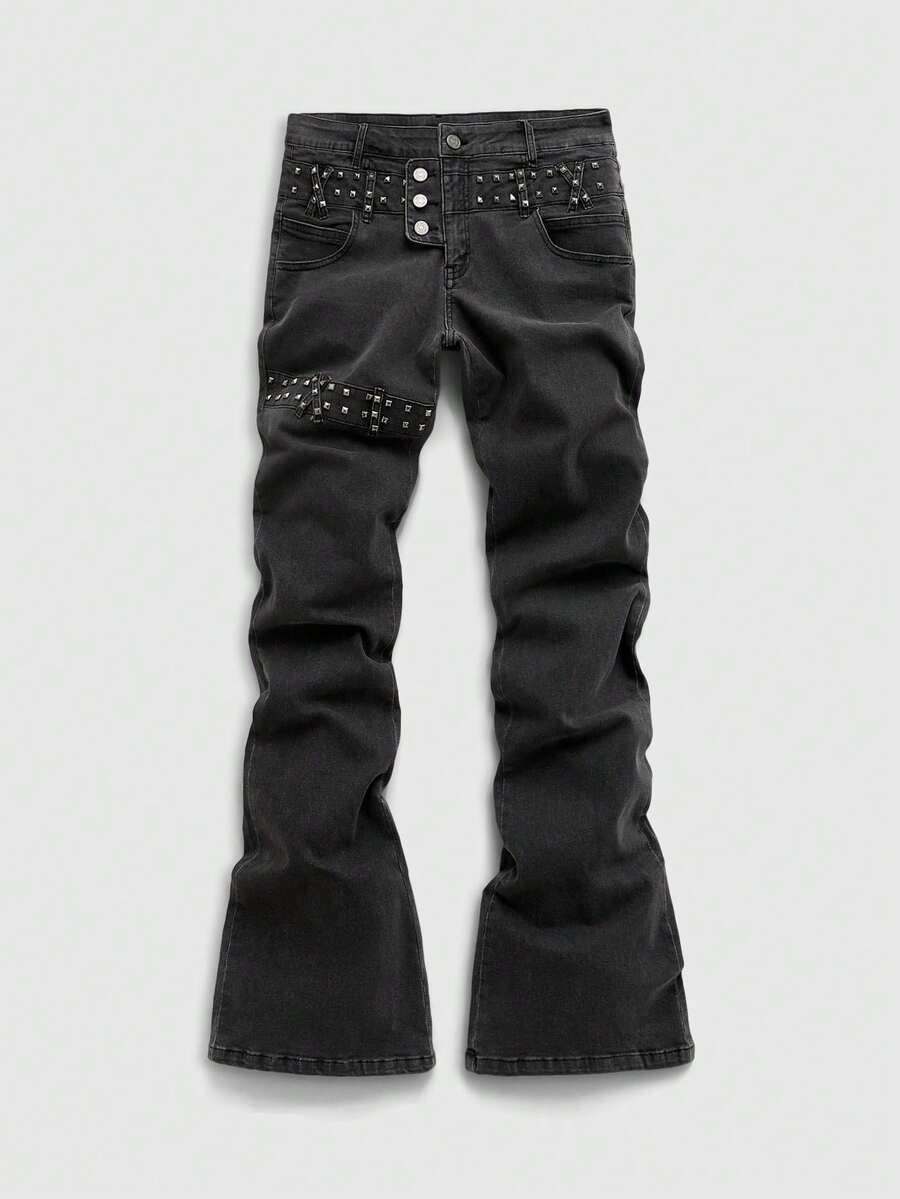 Casual Jeans in denim con rivetti in metallo a strati per uomo
