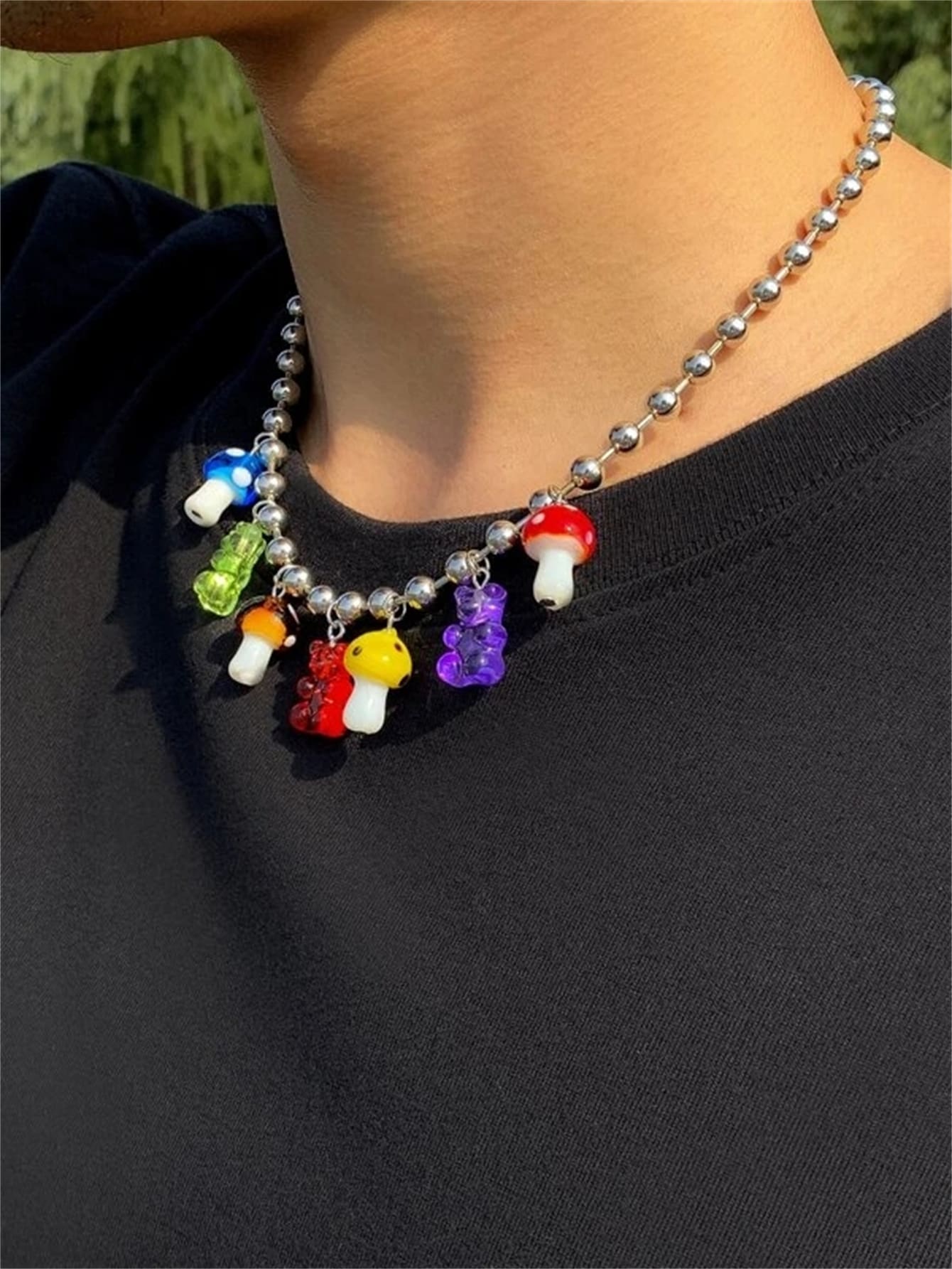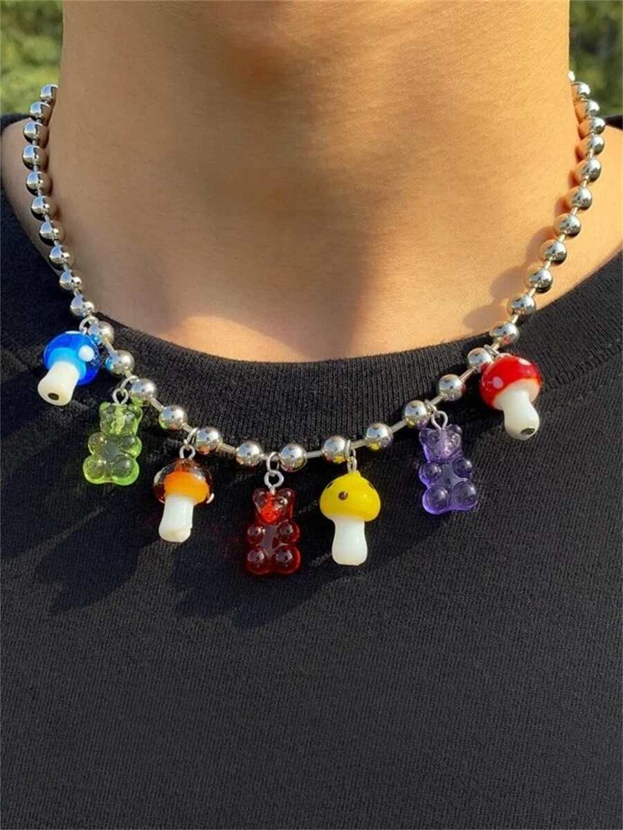 Uomo 1 pezzo Collana pendente carino lega funghi & orso per per decorazione quotidiana