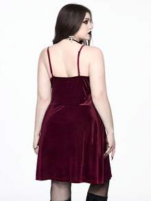 Goth Abito in velluto di taglia grande, colore tinta unita, design romantico vintage gotico in pizzo