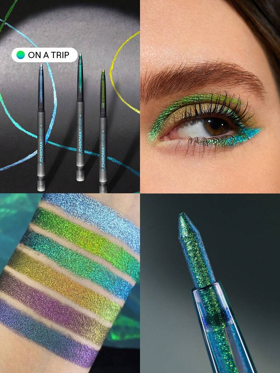 Chroma Zone Multichrome Gel Liner-On A Trip 3 Colori Eyeliner In Gel Lucido Ultra Pigmentato Con Finitura Lucida, Impermeabile E Anti-Sudore, Senza Sbavature, Verde, Multiuso, Eyeliner Liscio Per Feste Di Natale Del Marchio Bellezza Trucco Cosmetico Per Donne Ragazze Perfetto Per Autunno Inverno Ideale Per Y2K Elegante Moda Adatto Per Compleanno Natale Presente Festa Pronto Migliore Colore