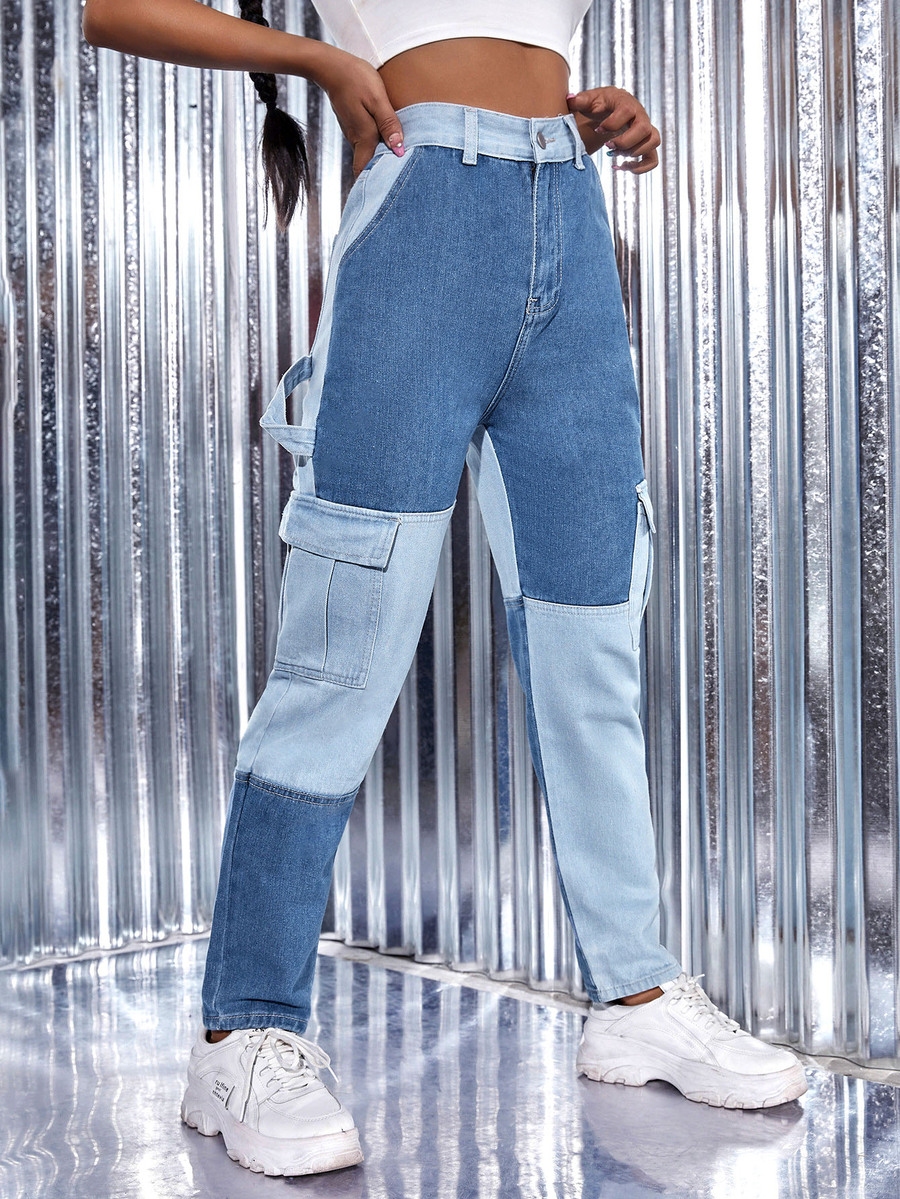 Jeans cargo colorblock