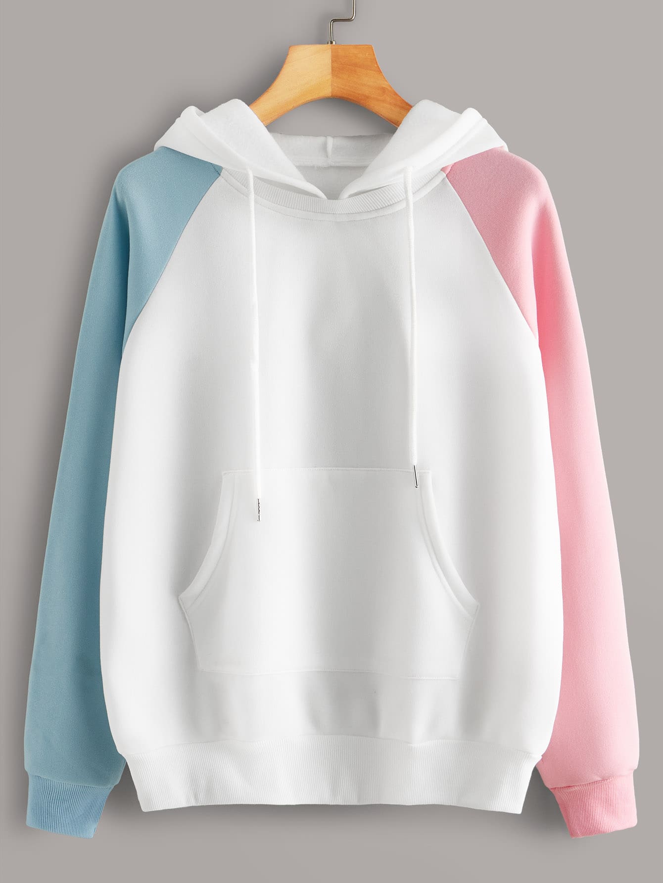 Felpa di blocchi di colore con cappuccio e manica raglan e tasca di canguro