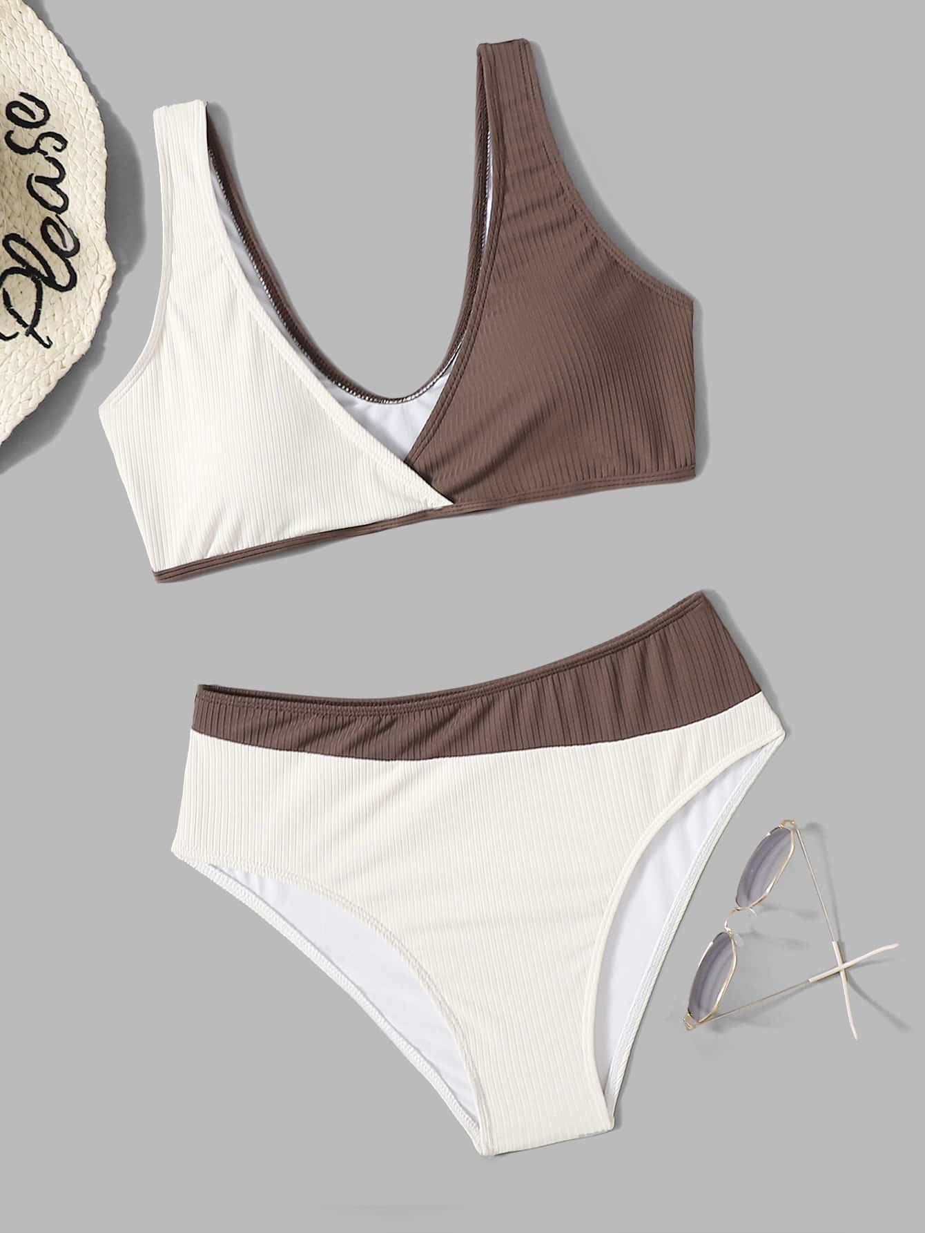 Bikini a coste in blocco di colore per la spiaggia estiva