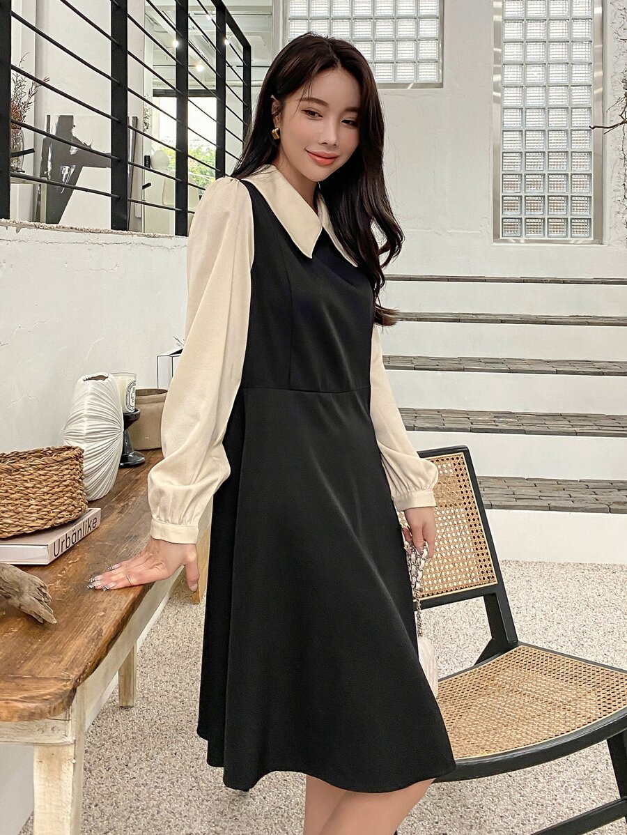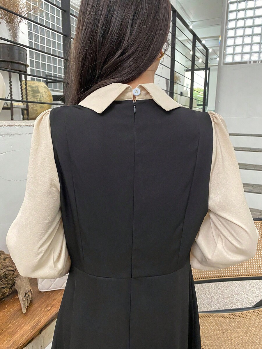 Abito Con Colletto Peter Pan A Blocchi Di Colore E Maniche A Sbuffo