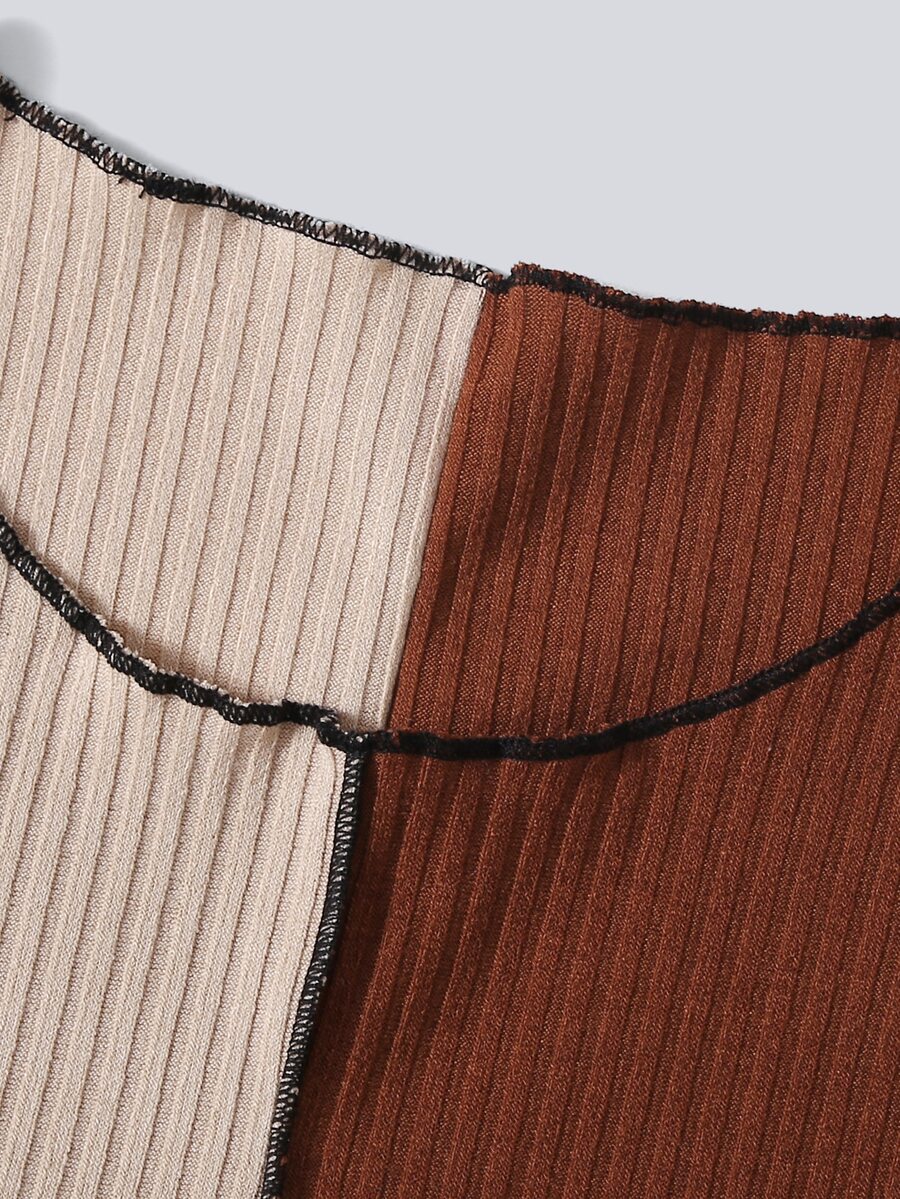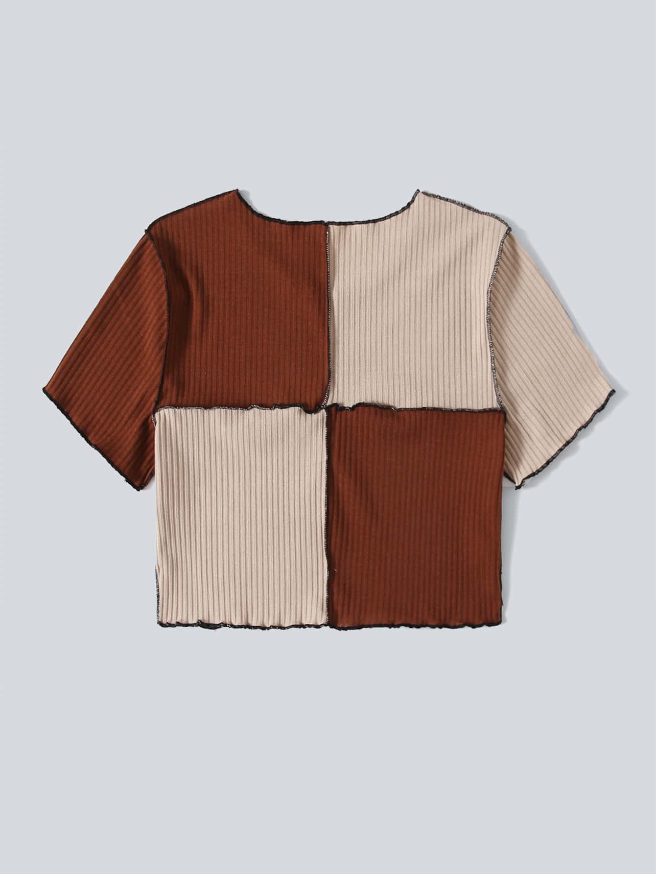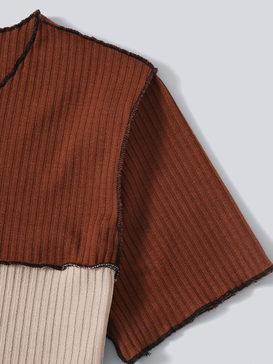 Maglietta corta a costine color block