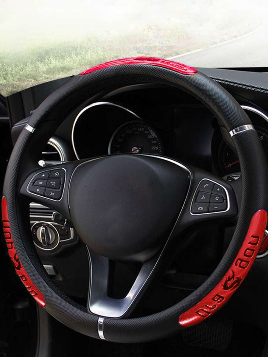 MEIKAXIU 1 pezzo Coprivolante in pelle con effetto schiuma e stile drago in metallo, elastico, universale per tutte le stagioni