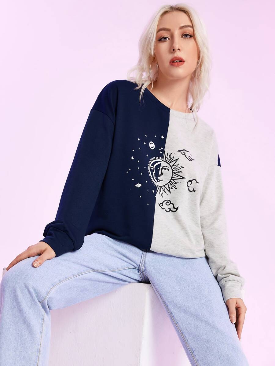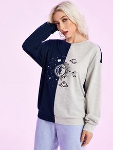 Felpa con stampa luna & sole di blocchi di colore
