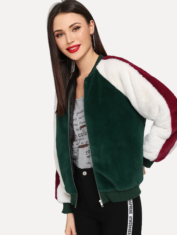 Giacca morbido con blocchi di colore con zip