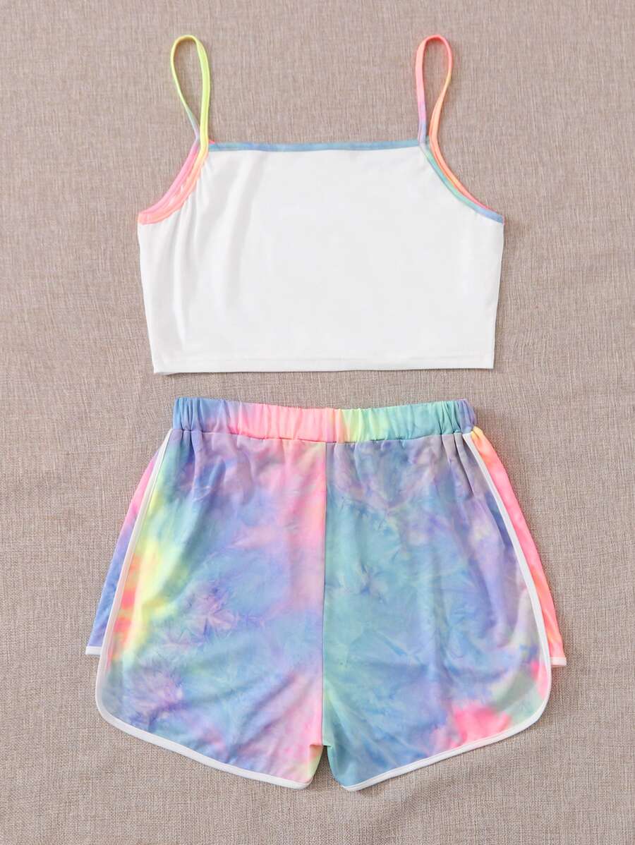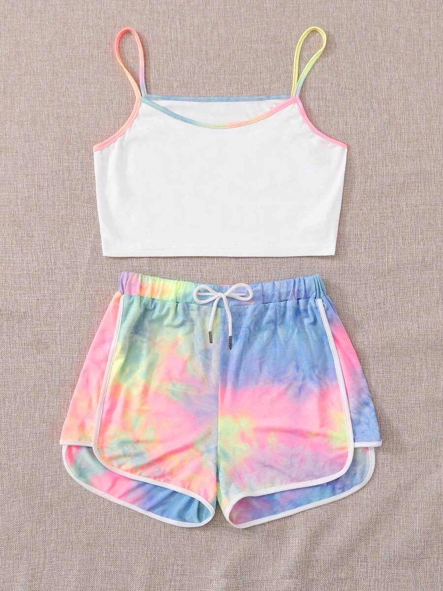 Shorts tie dye & Top con bretelle sottili e bordo a contrasto