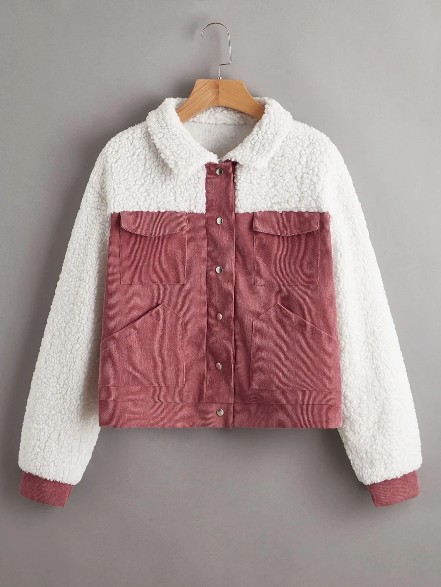 Giacca con colletto in shearling sintetico a contrasto