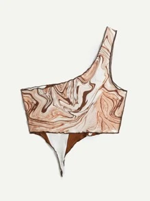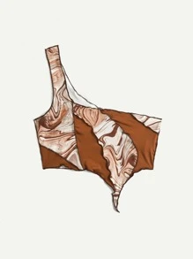 Top corto contrasto grafico monospalla