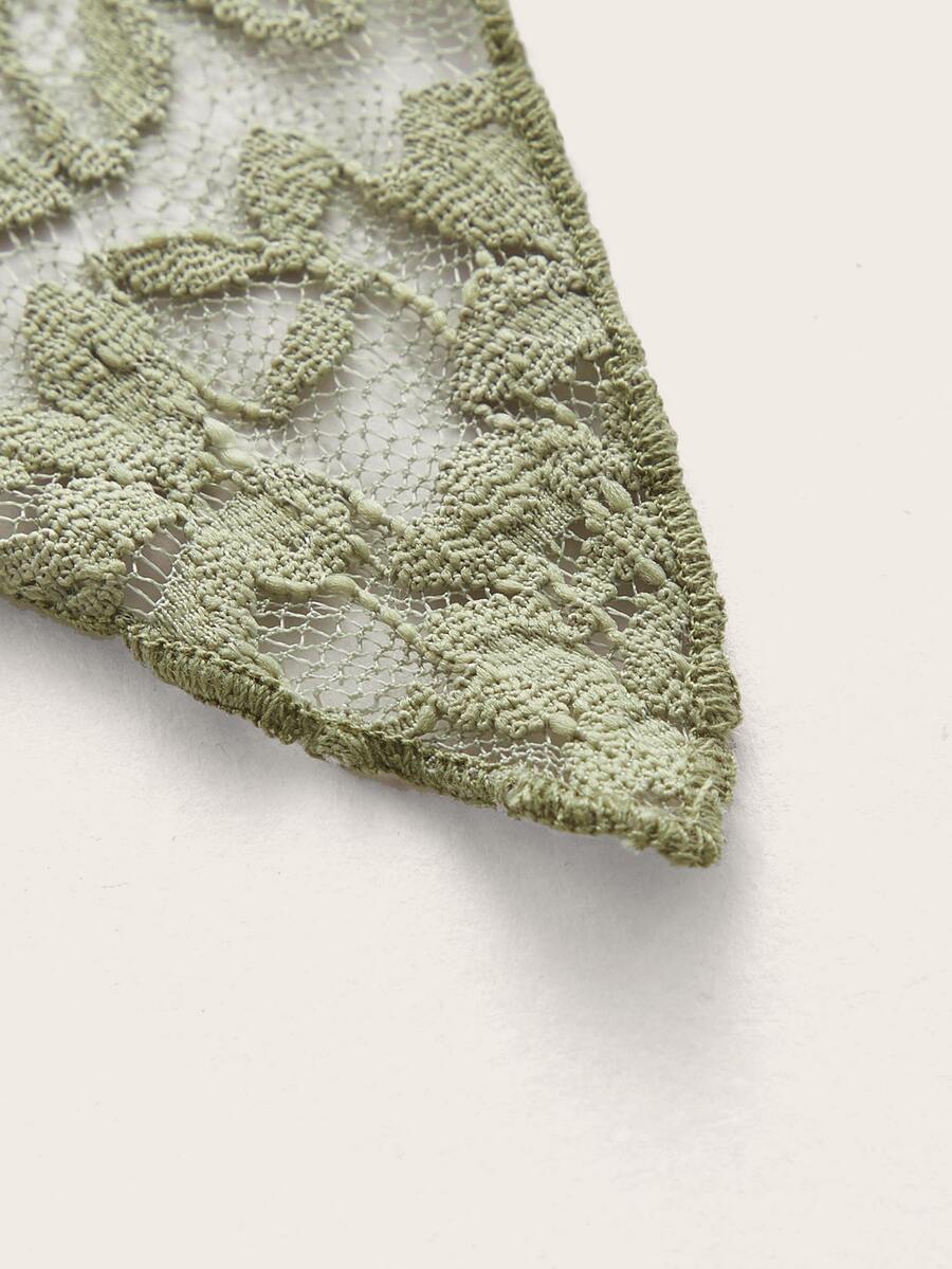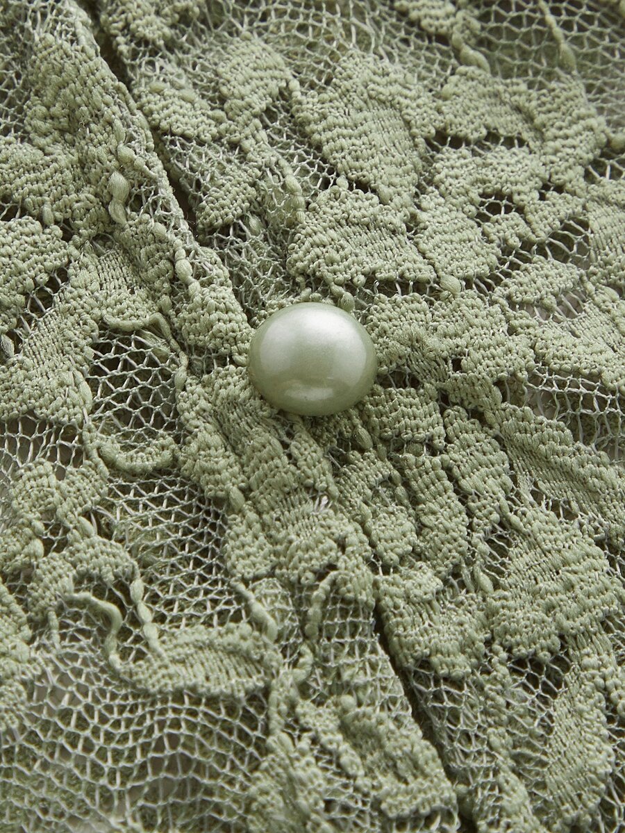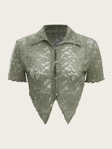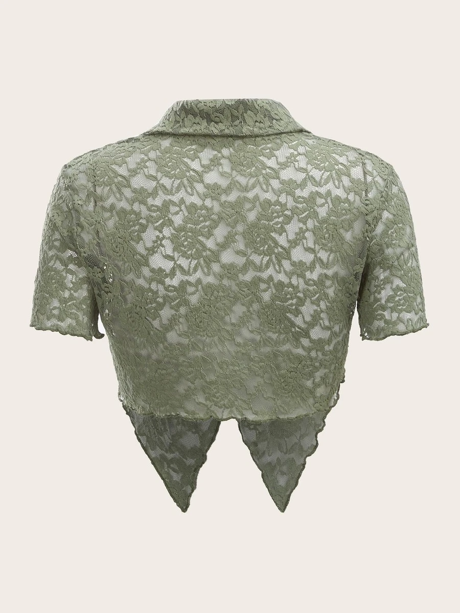 Top corto pizzo a contrasto con bottone frontale orlo lattuga asimmetrico