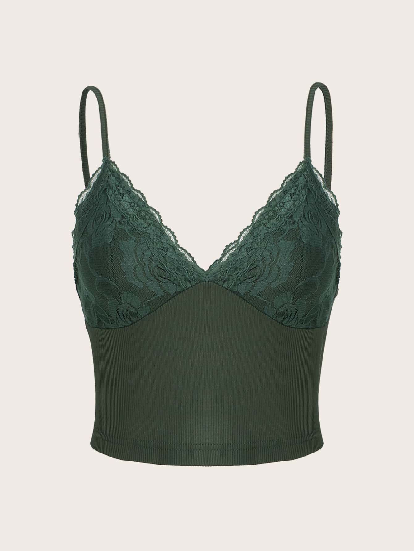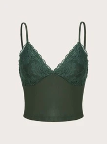 Top con bretelle sottile pizzo a contrasto