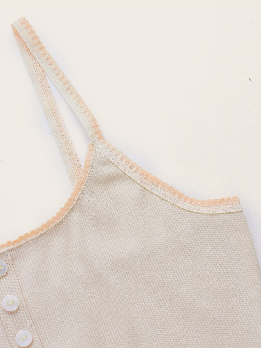 Top con bretelle sottile pizzo a contrasto con mezzo bottone