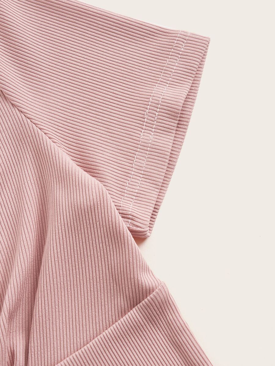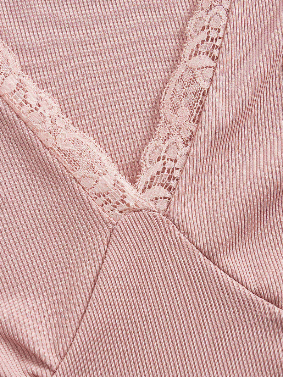 Maglietta pizzo a contrasto a costine