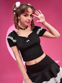 Maglietta pizzo a contrasto plissettato
