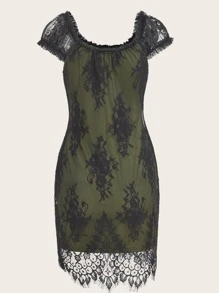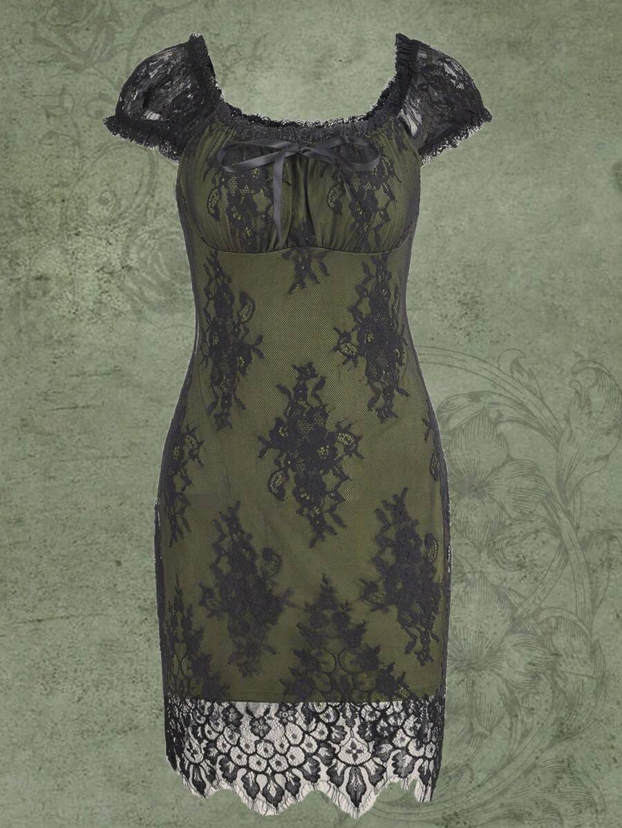 Abiti pizzo a contrasto con nodo frontale pizzo
