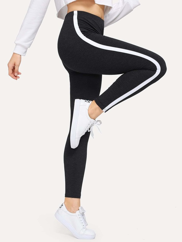 Leggings con nastro laterale a contrasto