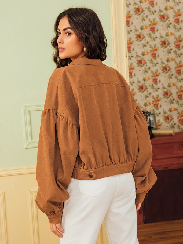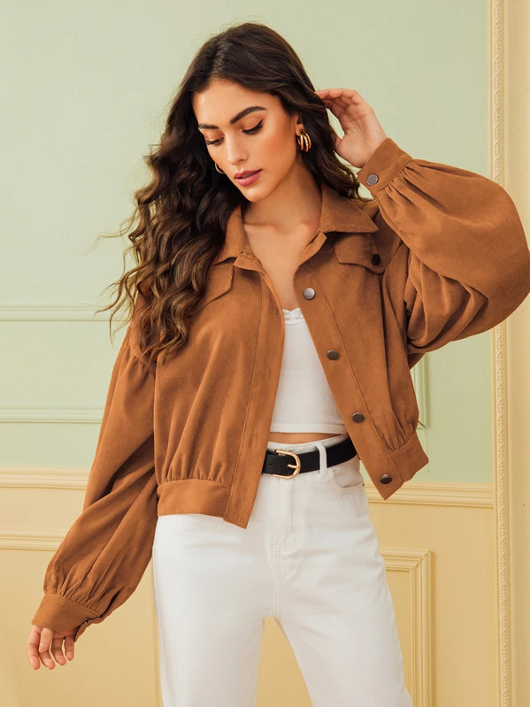 Giacca in velluto a coste con manica coste e tasca con patta e bottone frontale