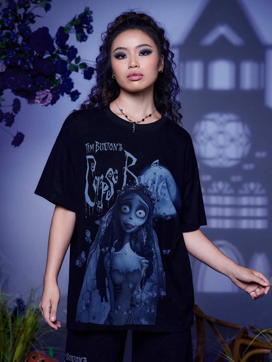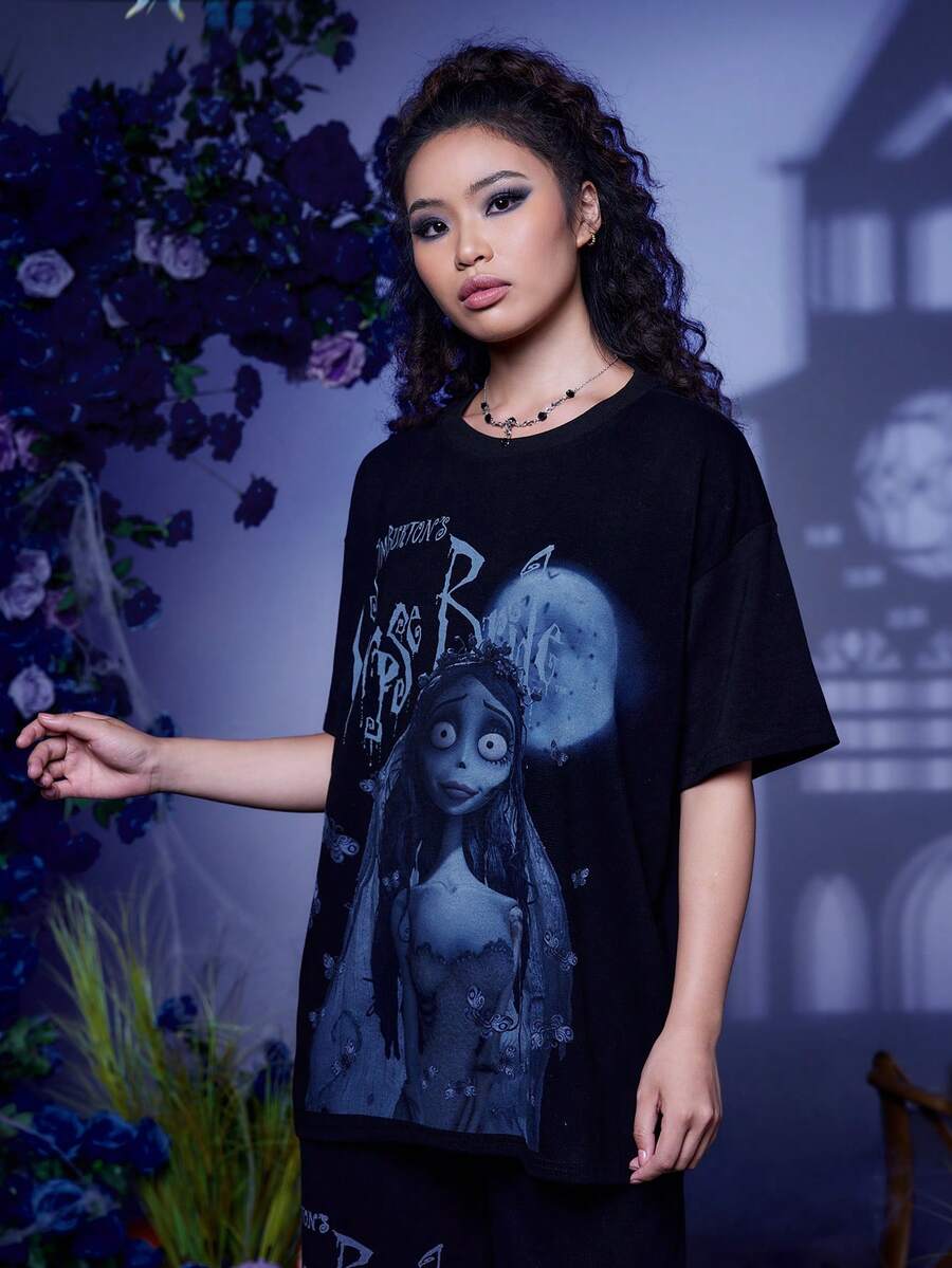Corpse Bride | ROMWE Maglietta ritratto fumetto & con grafica lettera