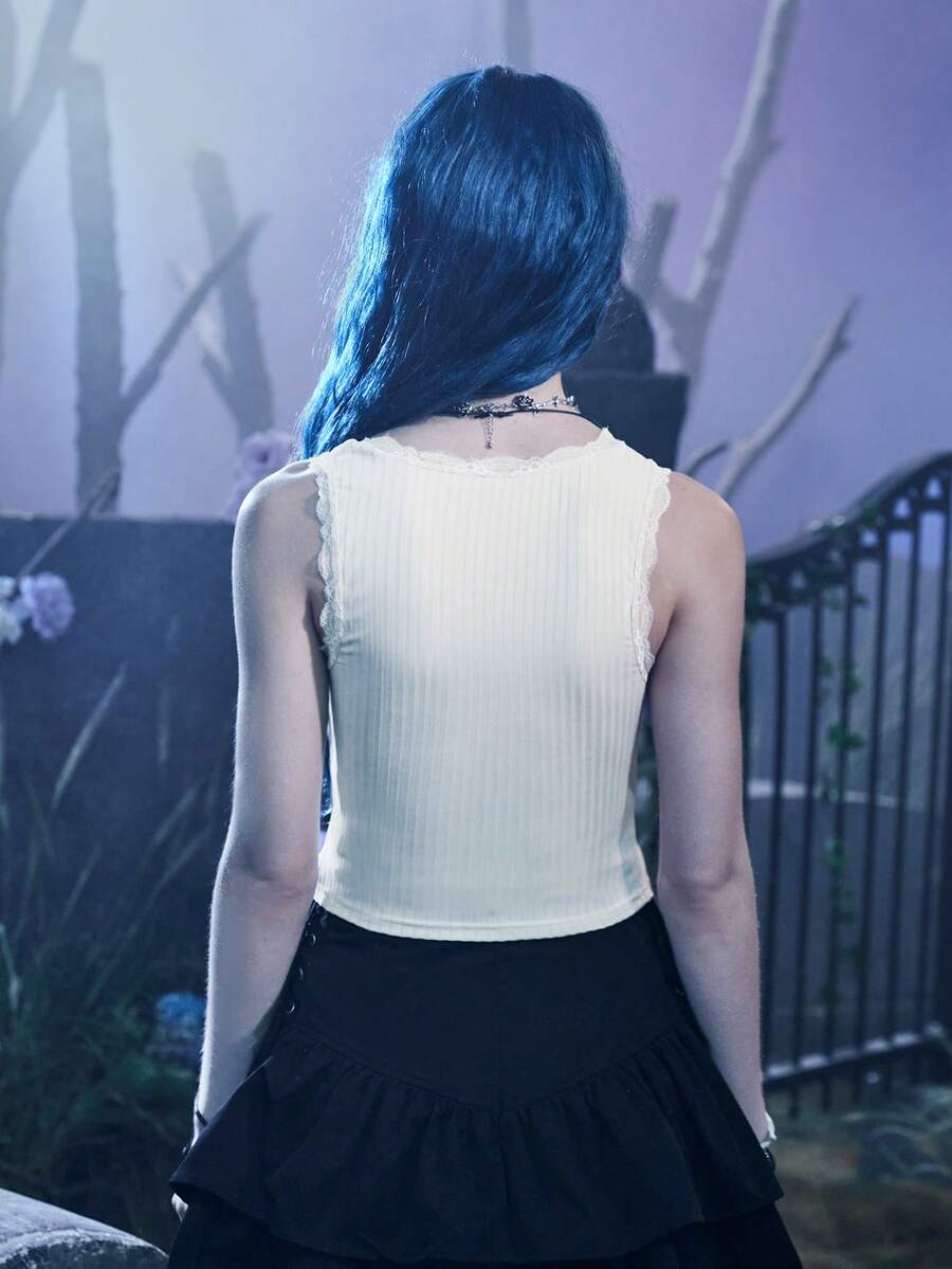 Corpse Bride | ROMWE Canotta con stampa figura pizzo a contrasto
