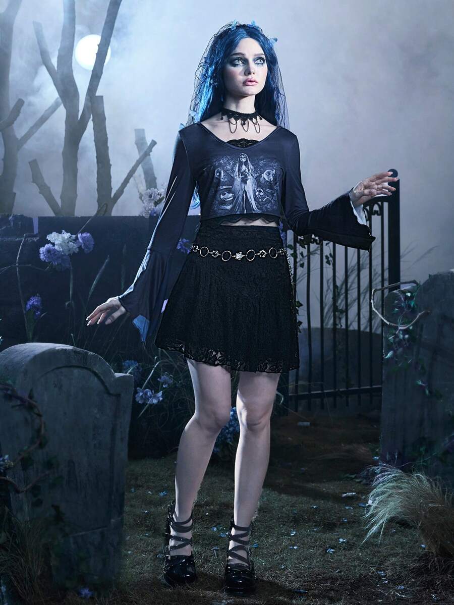Corpse Bride | ROMWE Maglietta con stampa figura pizzo a contrasto