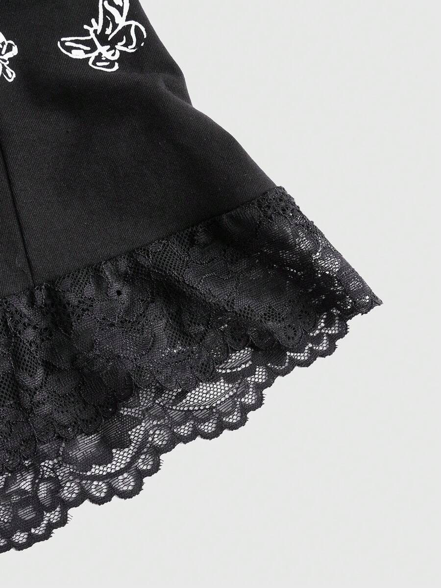 Corpse Bride | ROMWE Taglie Forti Maglietta farfalla & con stampa figura pizzo a contrasto