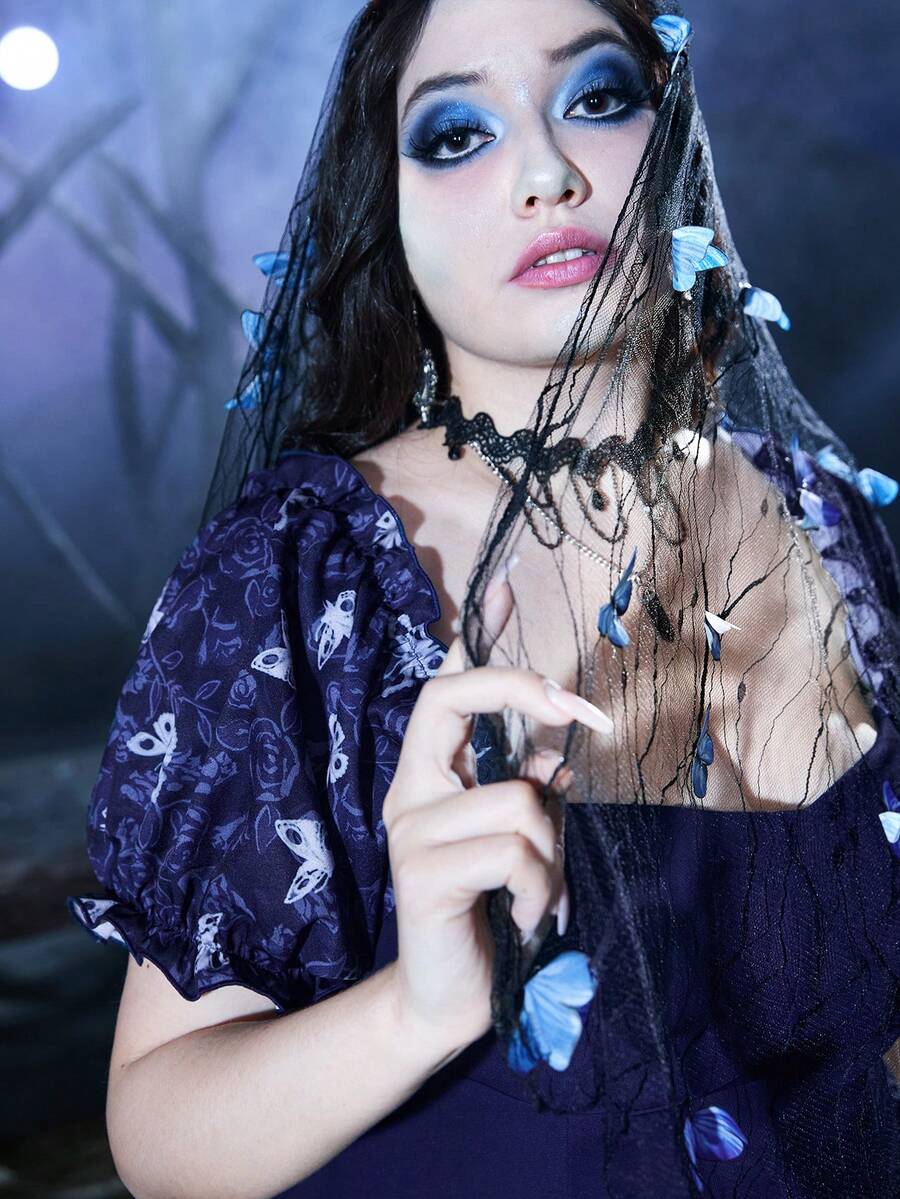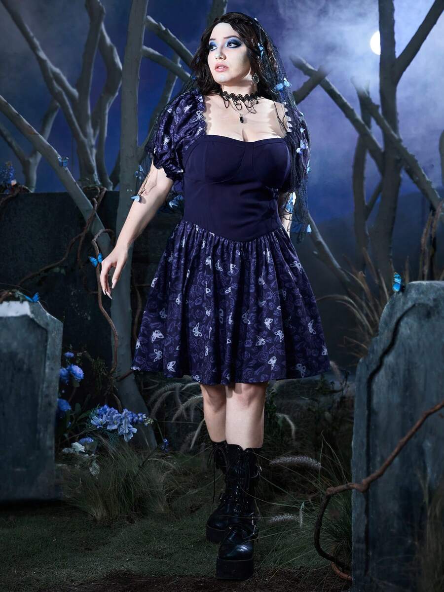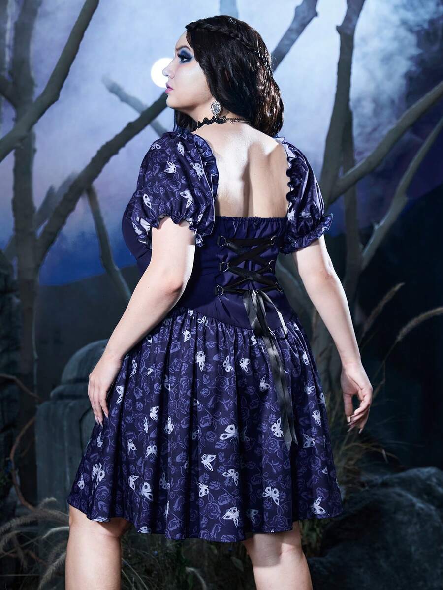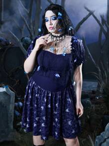 Corpse Bride | ROMWE Taglie Forti Abiti con stampa farfalla con manica a sbuffo con lacci