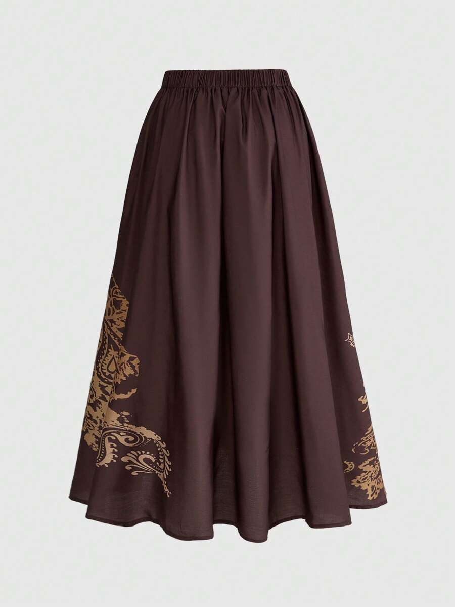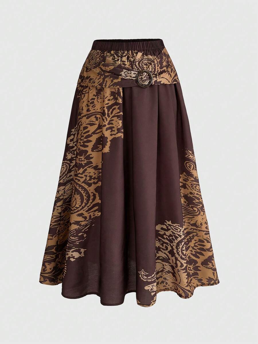 Gonna vintage country hippie con motivo paisley, chiusura in legno, taglie comode per donna