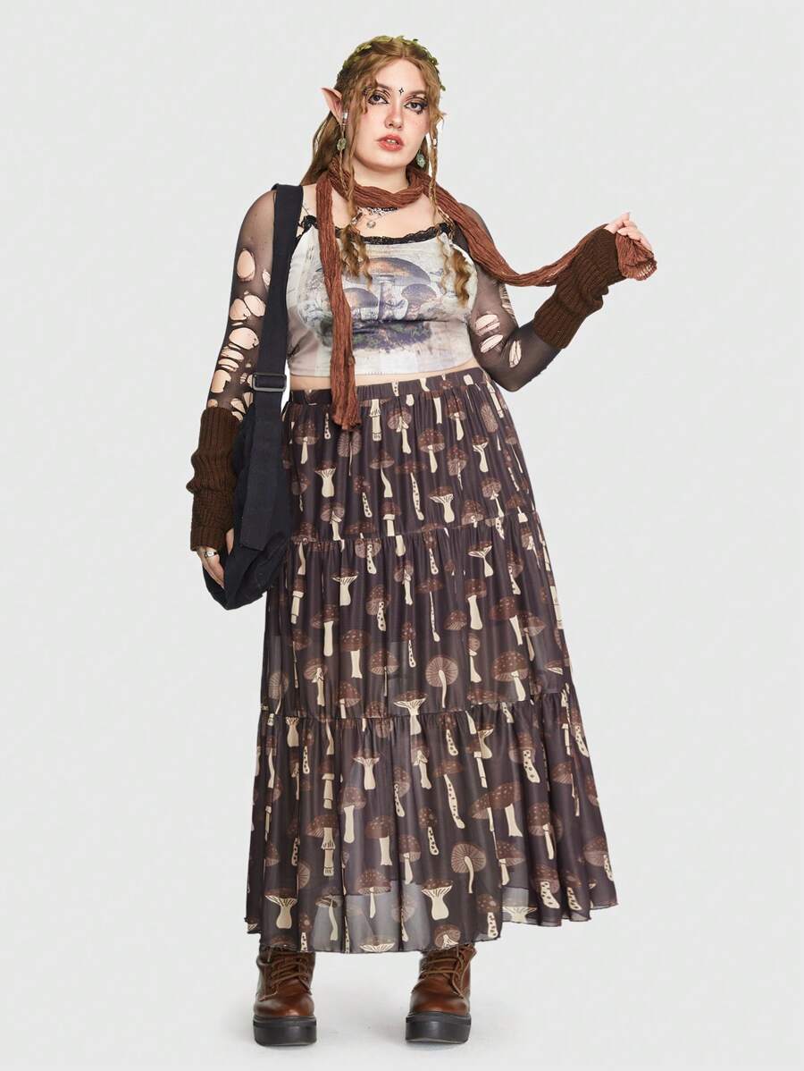 CourtneyGrabenShop Taglie Forti Gonne stampato all over con volant