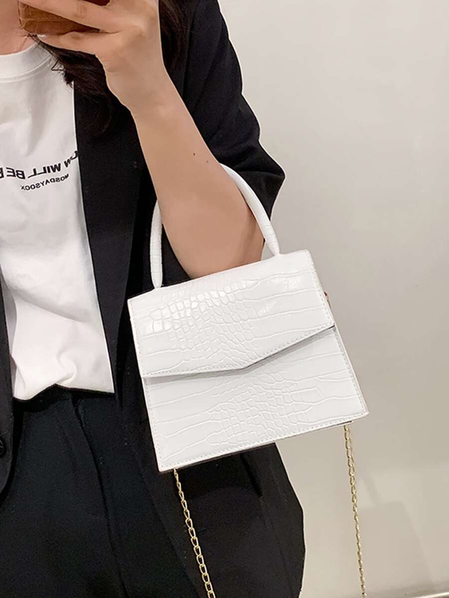 Borsa A Tracolla Con Catena In Rilievo Coccodrillo