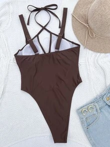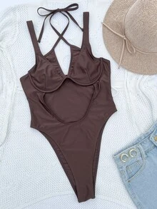 Costume intero scavato incrociato con nodo dietro con ferretto