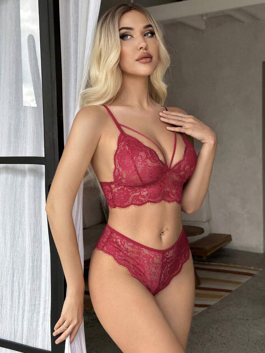Set lingerie scavato pizzo senza fili