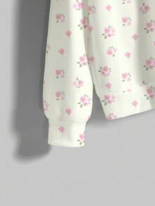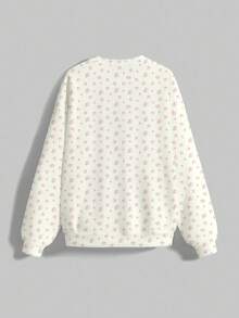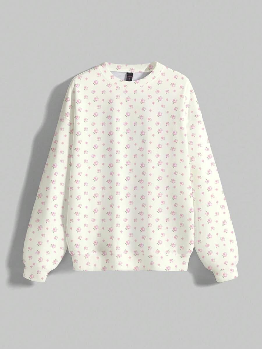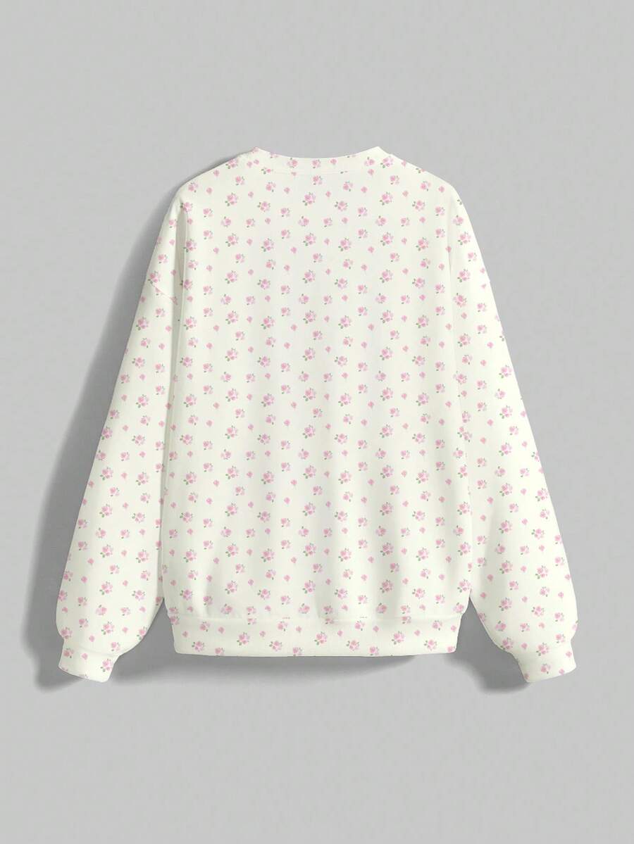 Kawaii Felpa ampia con stampa floreale su tutto il capo, collo equipaggio, maniche lunghe, carina e innocente, adatta per autunno/inverno/primavera