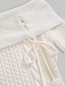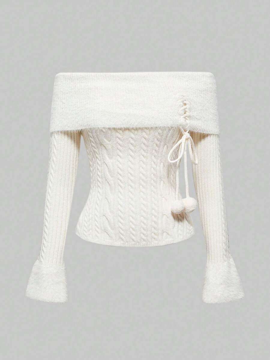 Maglione da donna carino e kawaii con spalle scoperte, decorato con ciuffi di pompon e patchwork in pelliccia, adatto per feste e occasioni